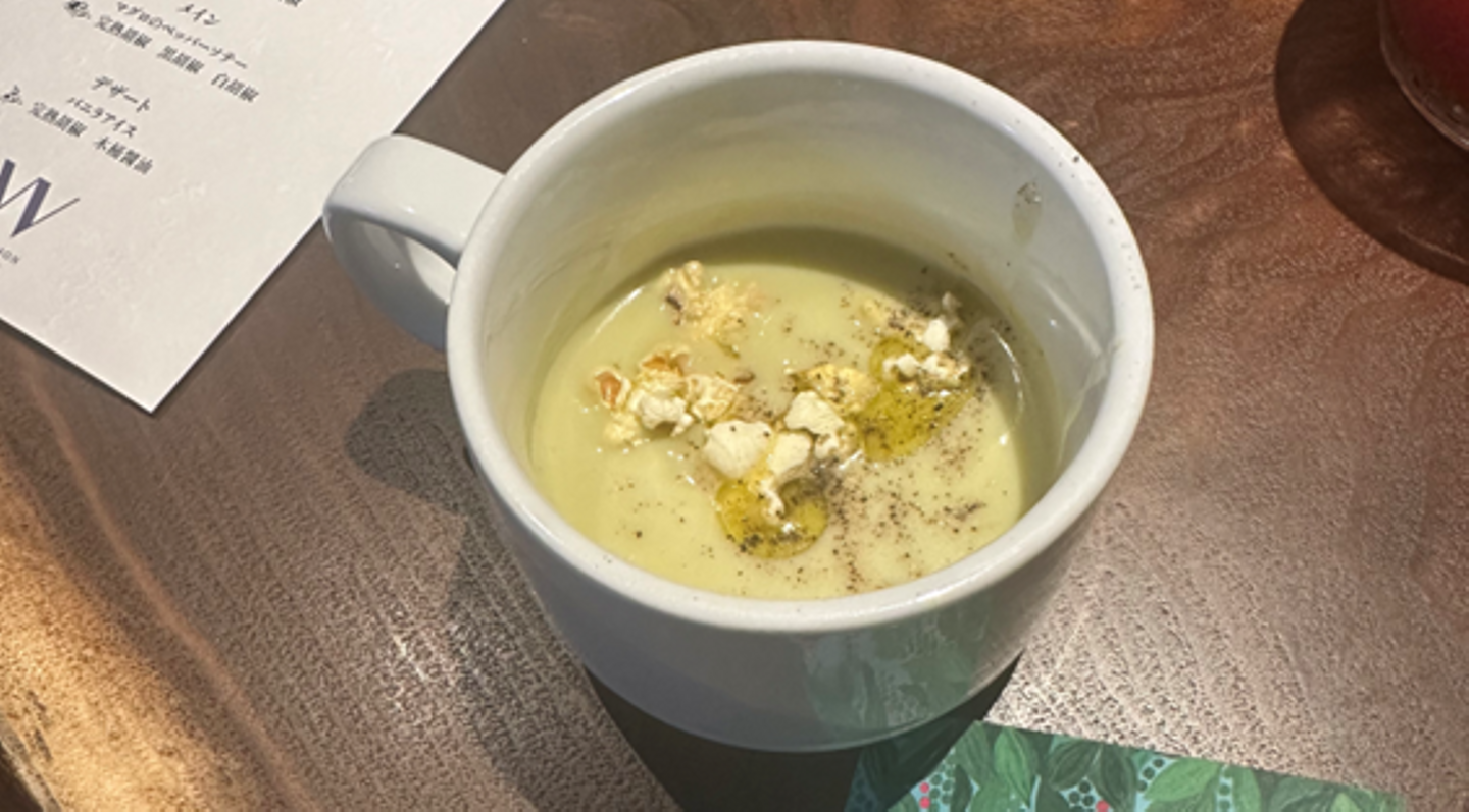 空豆のポタージュ+ポップコーン