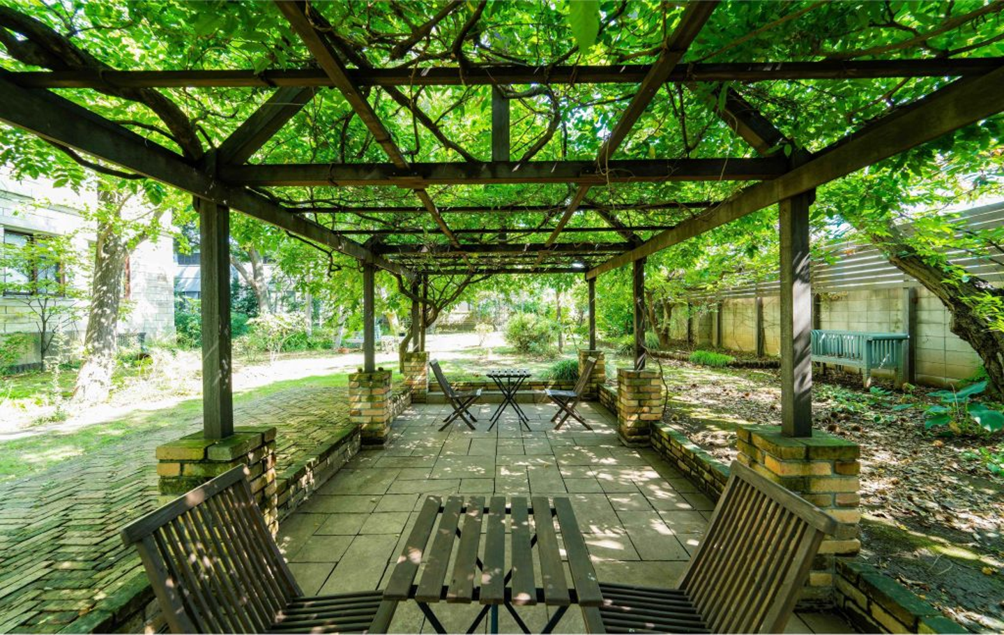 本社「OKS CAMPUS」敷地内にある「シークレットガーデン」。会社にいることをついつい忘れてしまいそうな、大好な場所。