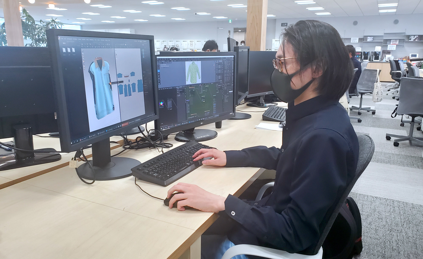 今回はファッションCGを作成しているチームから、CGテックリードの牛山さん(写真:左)とインターンの関口さん(写真:右)に、オムニスでの働き方を中心にお話を伺いました。