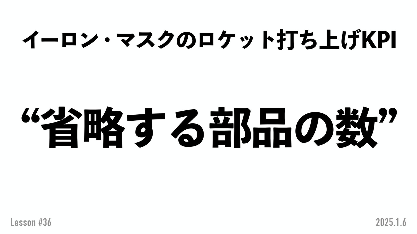 その中にイーロン・マスクが 様々な数字で意思決定を目指す話 があるんです。例えば、SpaceXにおけるロケット打ち上げ数のKPI。そして、打ち上げるロケットのKPIを達成するためのKPIをどうするんだ、という話です。答えは、ロケットを構成するパーツ・部品の省略数をKPIにしたわけです。すごい感覚的には意外な感じがしませんか!?素人的にはロケットの推進力とか、どのぐらいのコストで作れるか部分を追求してしまいがちです。しかし、そうじゃなくて部品の数を削ろうということを掲げ、優先する。結果、SpaceXは昨年、一回打ち上がって戻ってくるというすごい偉業をやってのけたんですね。