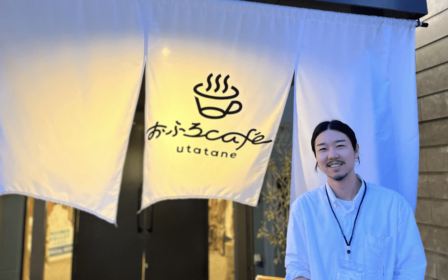 入社と同時に「おふろcafé utatane」の支配人となった溝江 卓登(みぞえたくと)さん。