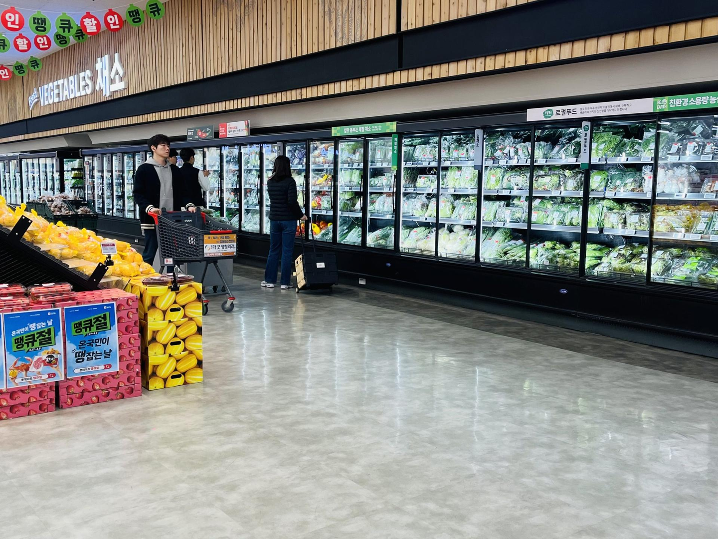 いよいよ韓国での時間も終わりを迎え、最後に訪れたのはロッテマート。3日間の視察で得た情報が豊富だったため、スーパーの陳列商品やお目当ての食材から得られるインプットが非常に深くなっていました。HACCP(Hazard Analysis and Critical Control Point)マークの認証が取れいている商品陳列が非常に多い印象でした。青菜一つとっても種類が豊富です。