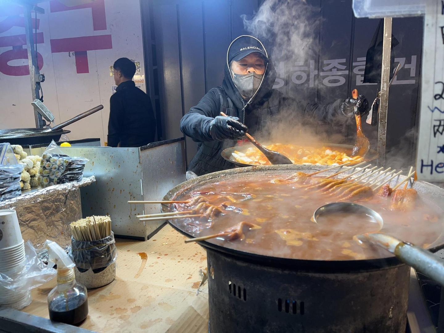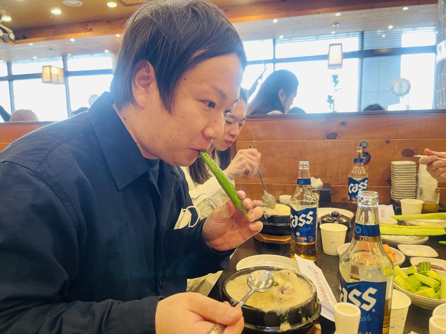 実際に食べてみると、火を吹くような辛さ…!「机の上にたくさん水が多く置いてあるな〜」と思っていたのですが、その理由がここでわかりました。日本人向けにローカライズされていない、リアルな韓国の“食”の一端を体験できたことも、とても貴重な経験でした。