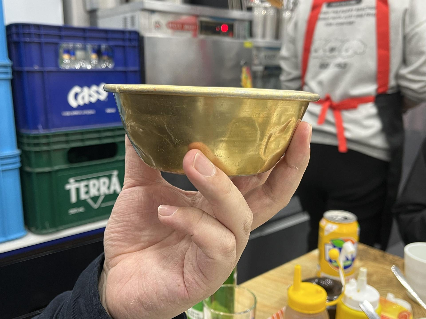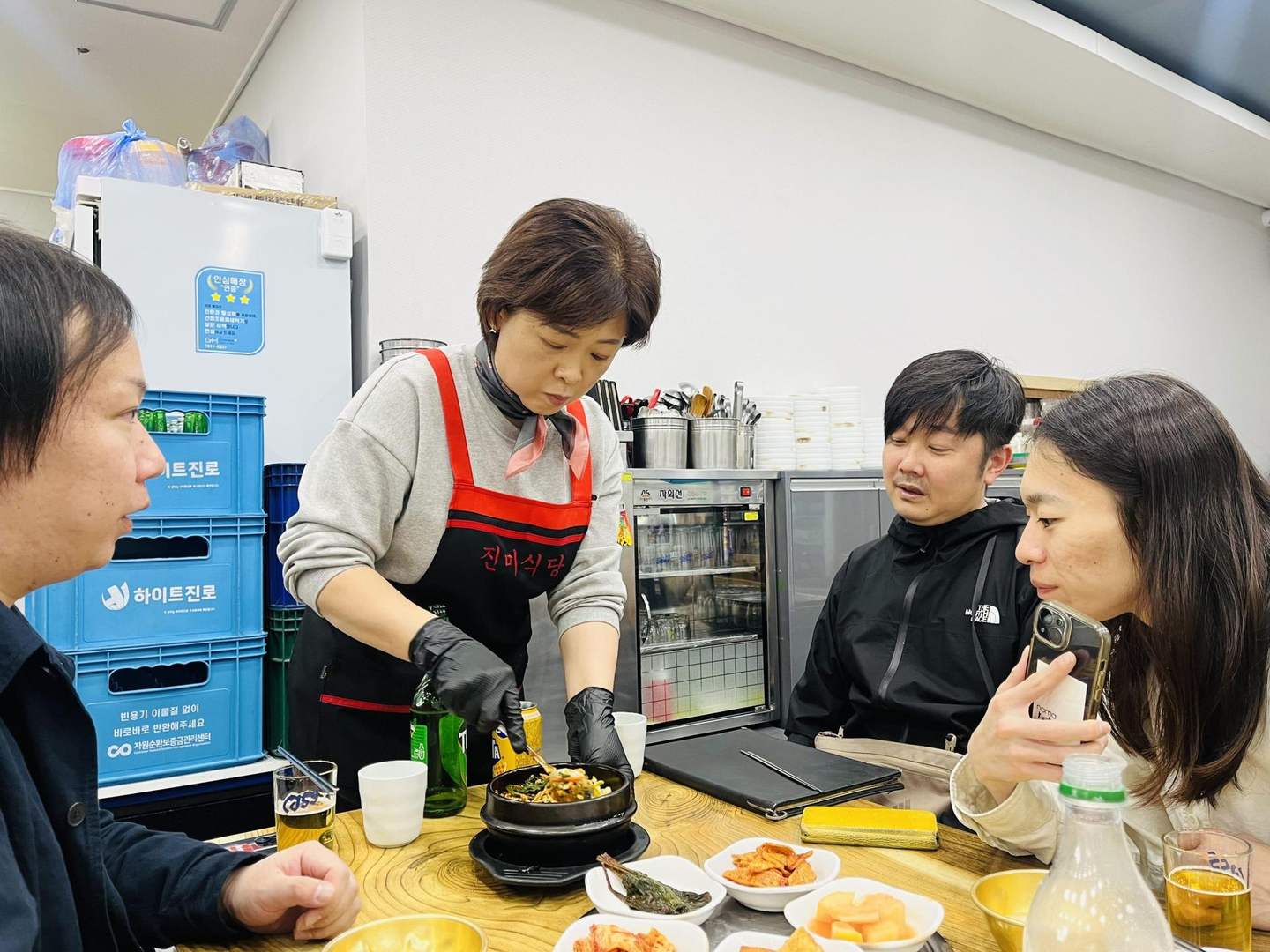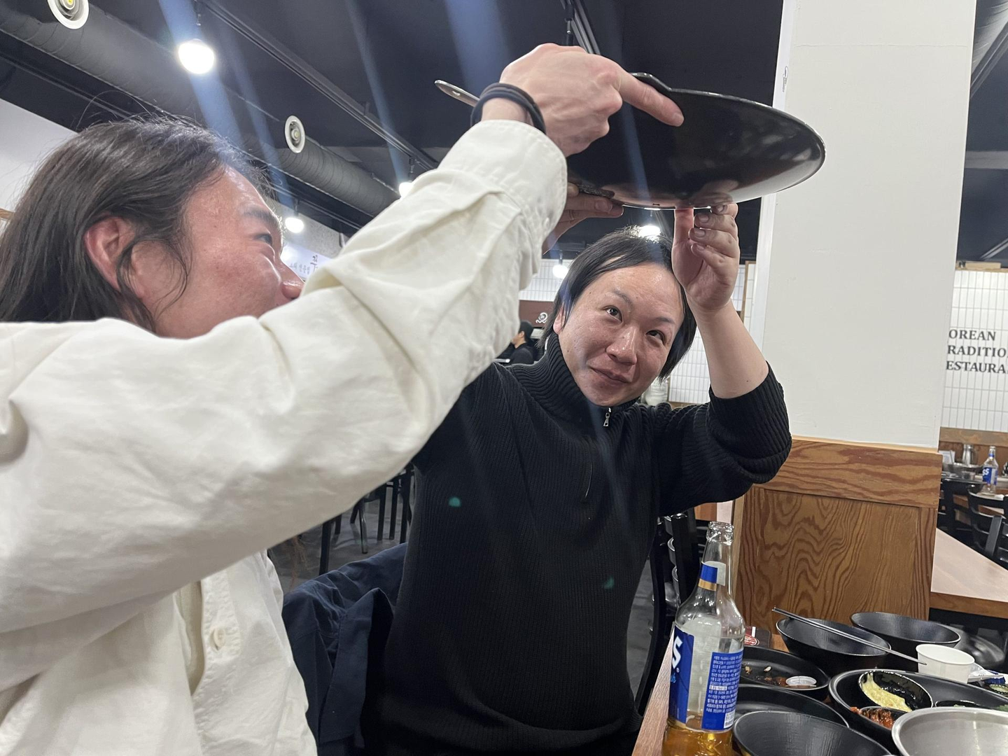 ふと横を見ると、お皿を手に取り、裏面のメーカーを真剣にチェックする人たち。これは「温泉道場のメンバーあるある」で、視察に行くとつい、食器の裏を見たり、ホテルのベッドや家具のメーカーを確認したりしてしまうんです。もはや見慣れた光景ですが、韓国でも健在でした。