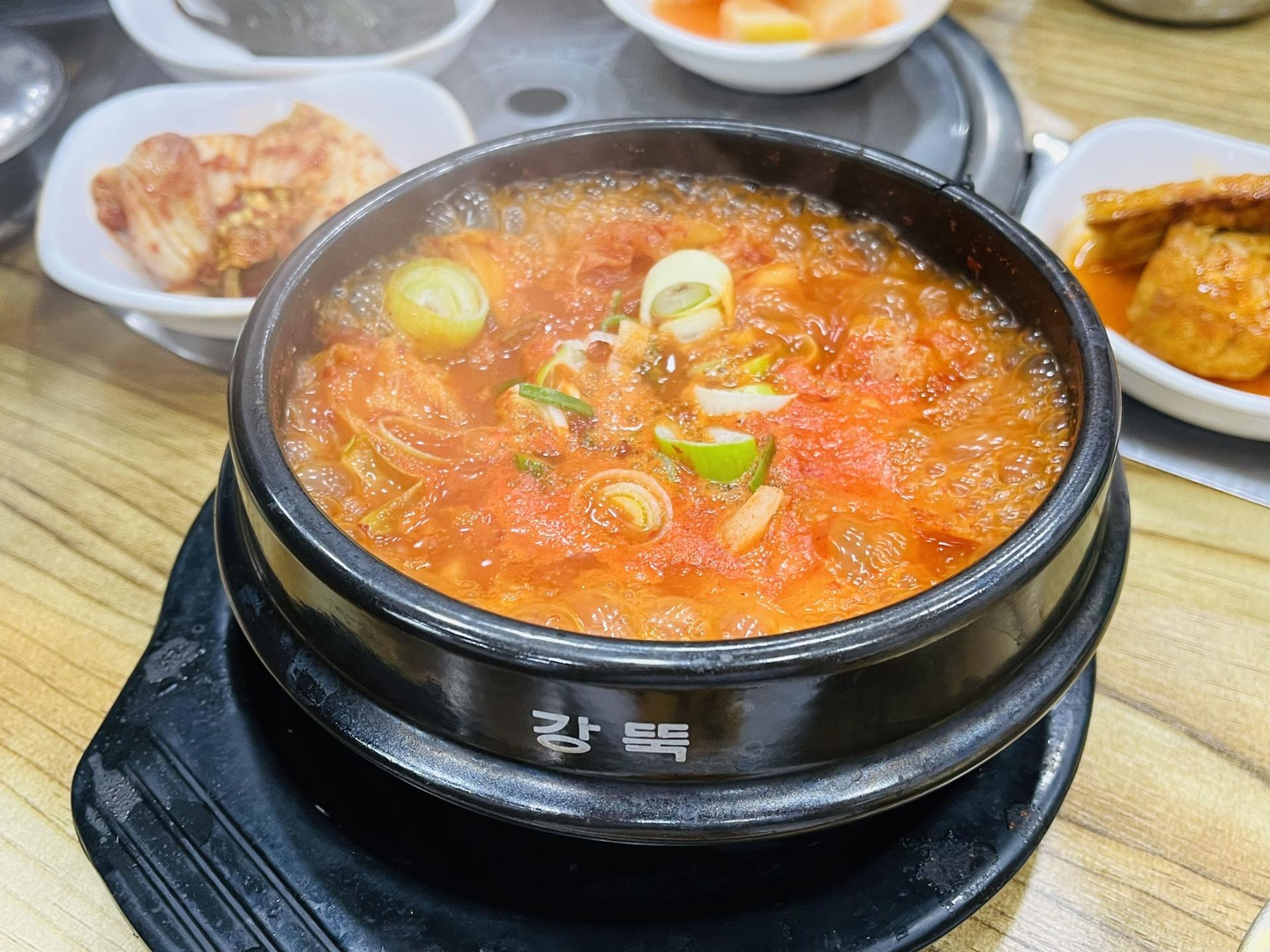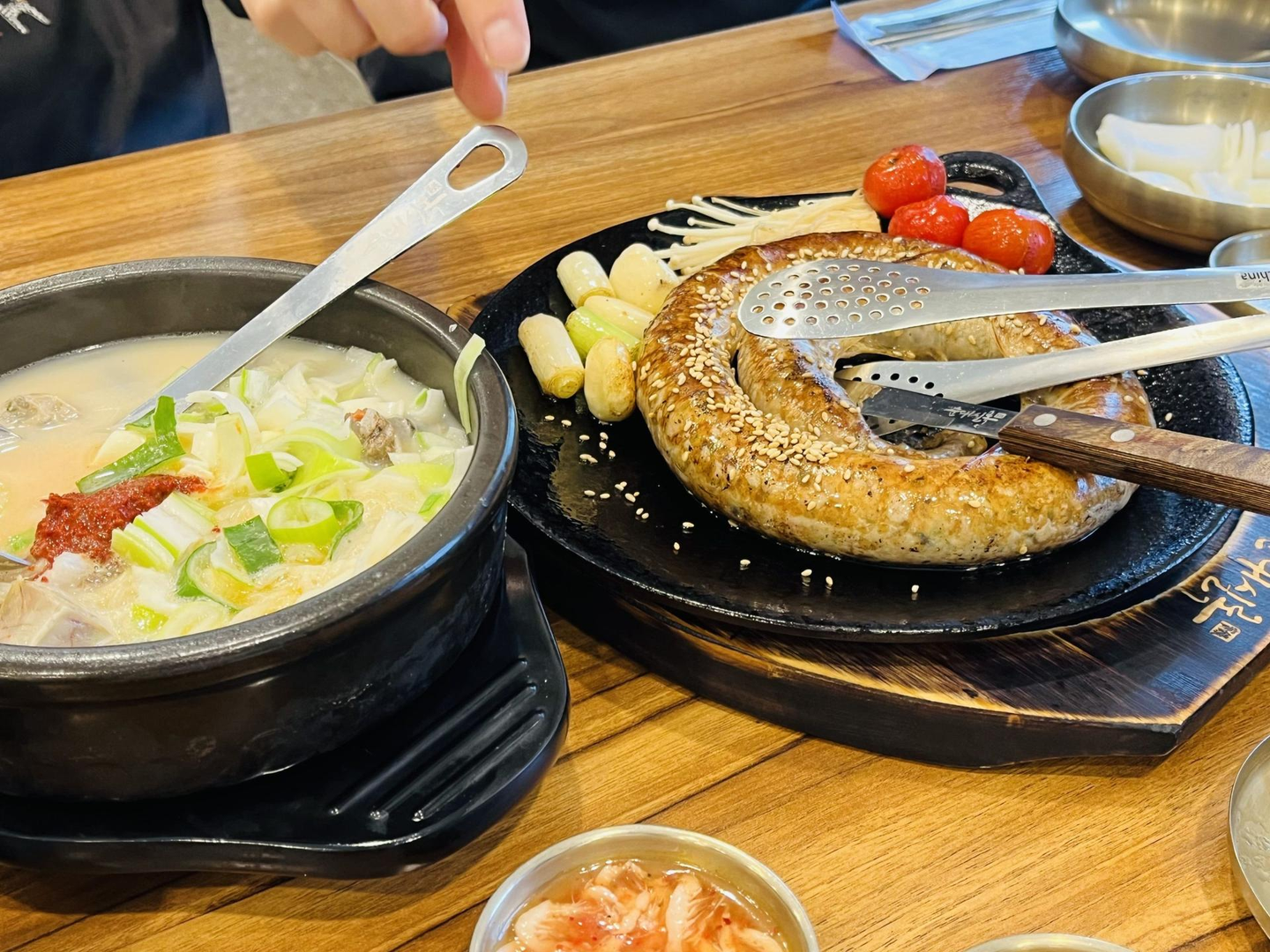 香ばしく焼き上げられたスンデは、とても食べやすく、初めてでも抵抗なく楽しめる味でした。そしてもう一品オーダーしたのが、スンデスープ。これがまた絶品で、スープのコクと旨味に思わずほっとする一杯でした。印象的だったのは、スープの味変として添えられていた「アミエビの塩辛」。これを加えることで、自分好みの塩加減に調整できるのですが、不思議と塩辛を入れると味がスッキリとまとまり、さらに飲みやすくなるのが驚きでした。