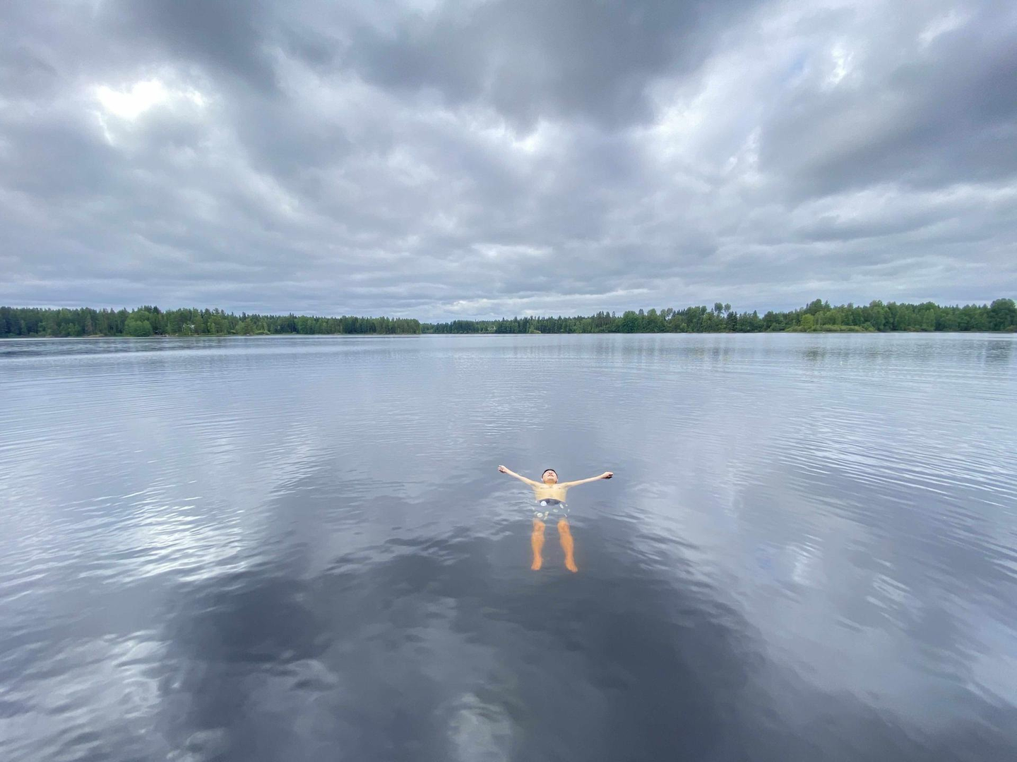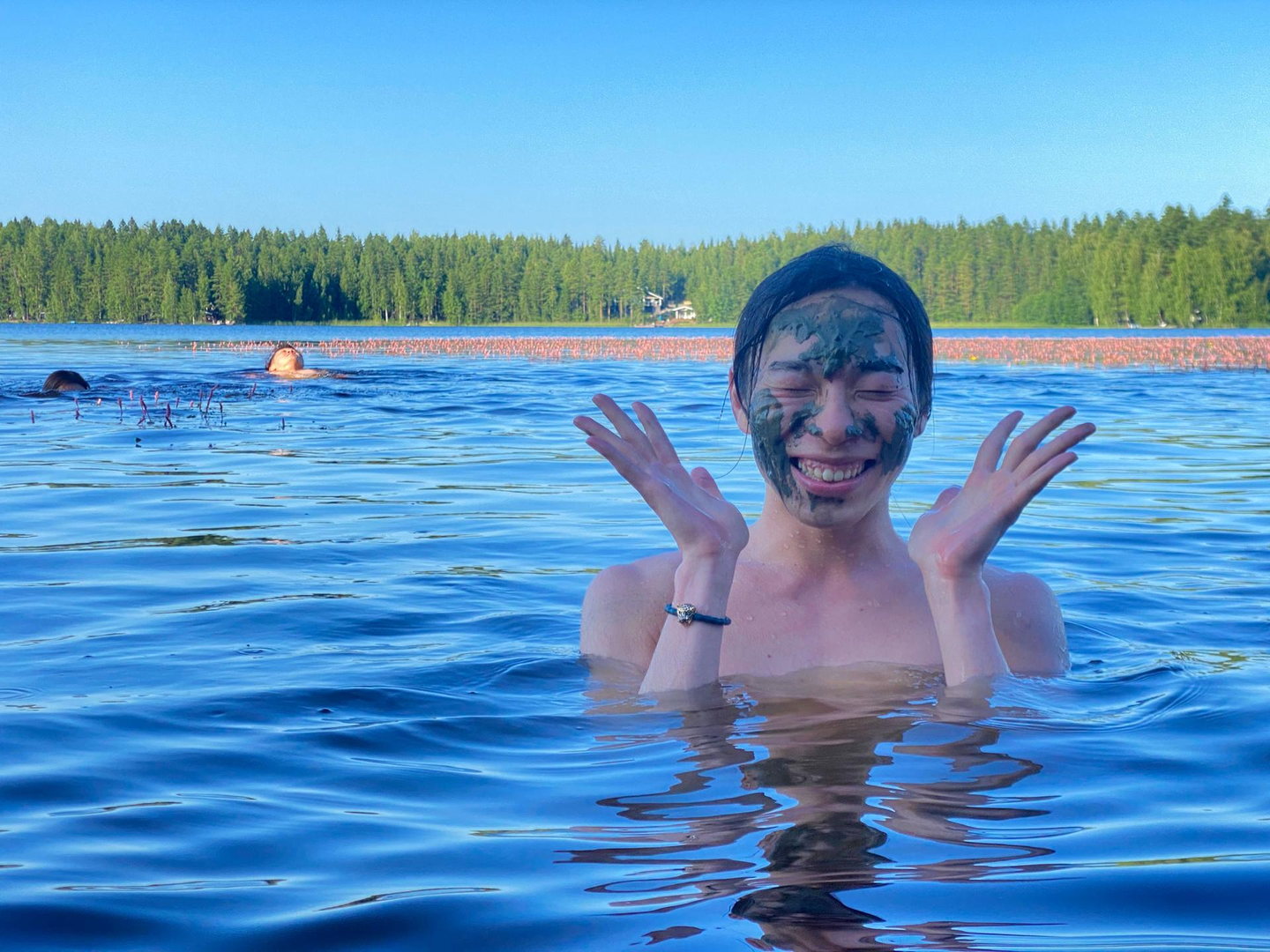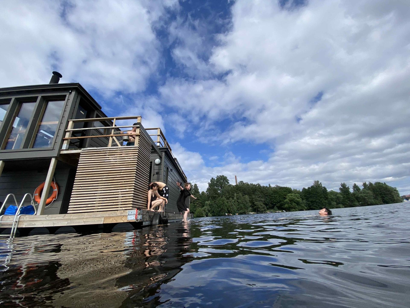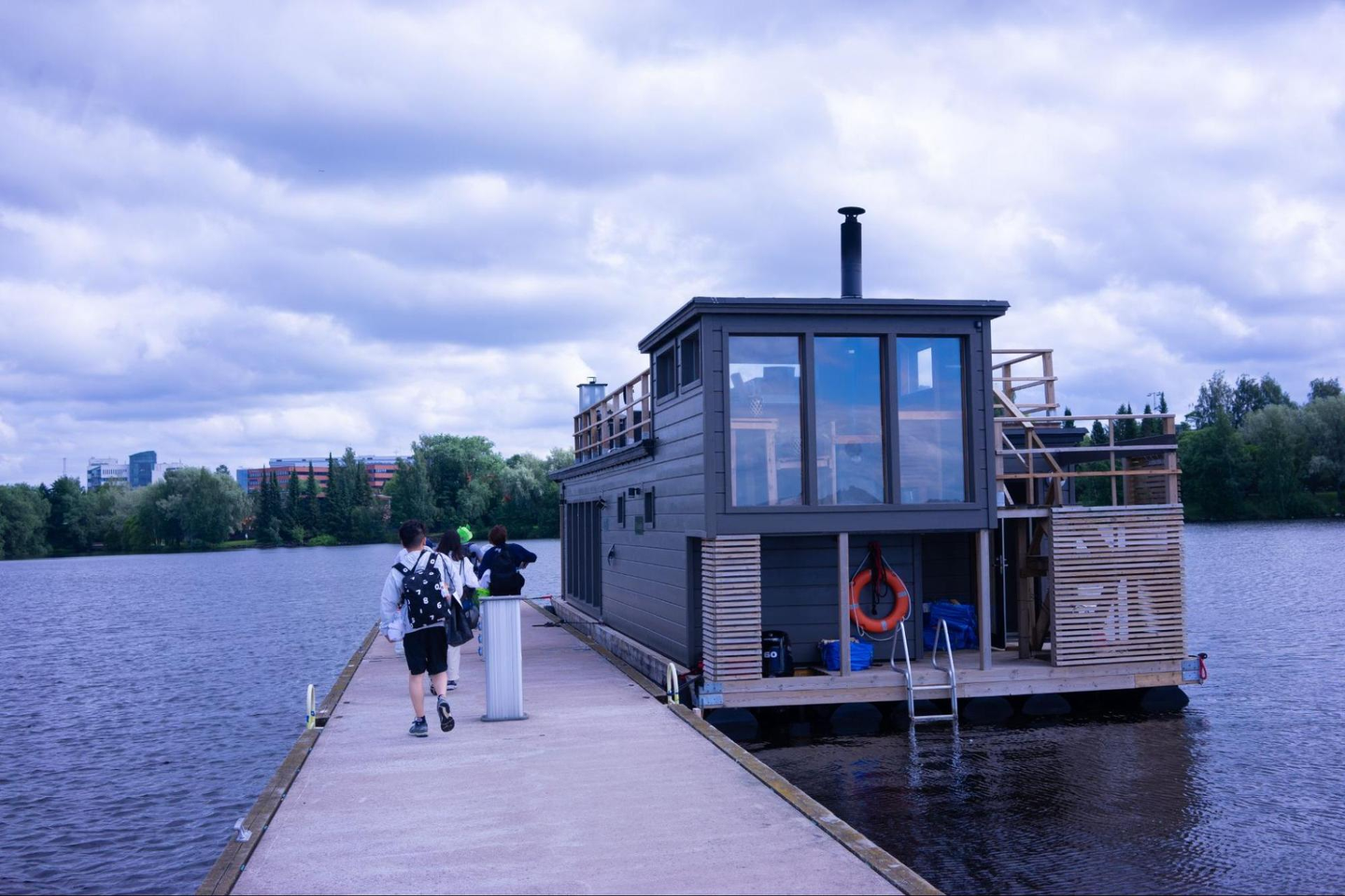 マンッタからタンペレに移動し、最初に体験したのは「Floating Sauna」。名前の通り、湖の上に浮く手作りのサウナで、周りは水と自然だけ!