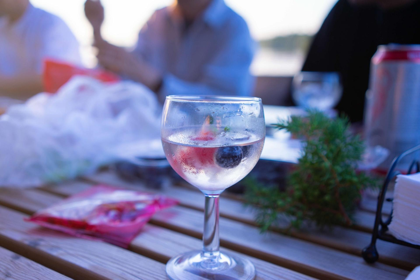 お食事はご家族手作りのサーモン料理や、ブルーベリーパイなどを振る舞ってくださりました! 周りにはジンの香り付けに使われるジュニパーやブルーベリーがたくさん生えており、フィンランドのお酒と一緒に現地の味を楽しみます。
