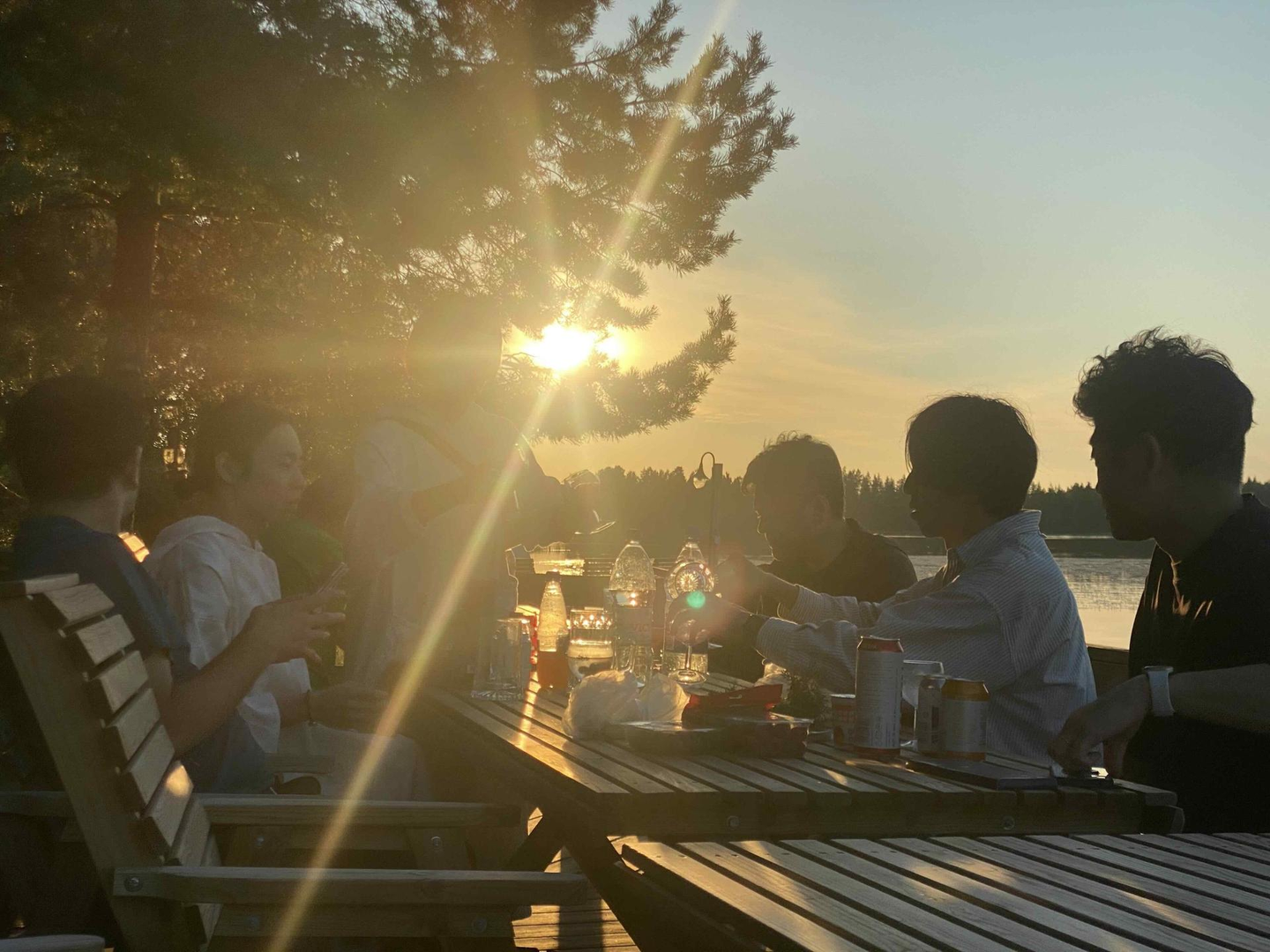 サマータイムで太陽が沈まない時期だったので、どんなに時間が経っても、ずっと夕方のような早朝のような景色がとても非日常的。美しすぎる湖畔の景色を見ながら語らう時間は、ぐっと心の距離を縮めてくれたり、湖の揺らぎや陽の光で反射するきらめきは、なかなか普段は大事にできない、自分自身と向き合い背中を推してくれるような、夢のような時間でした。