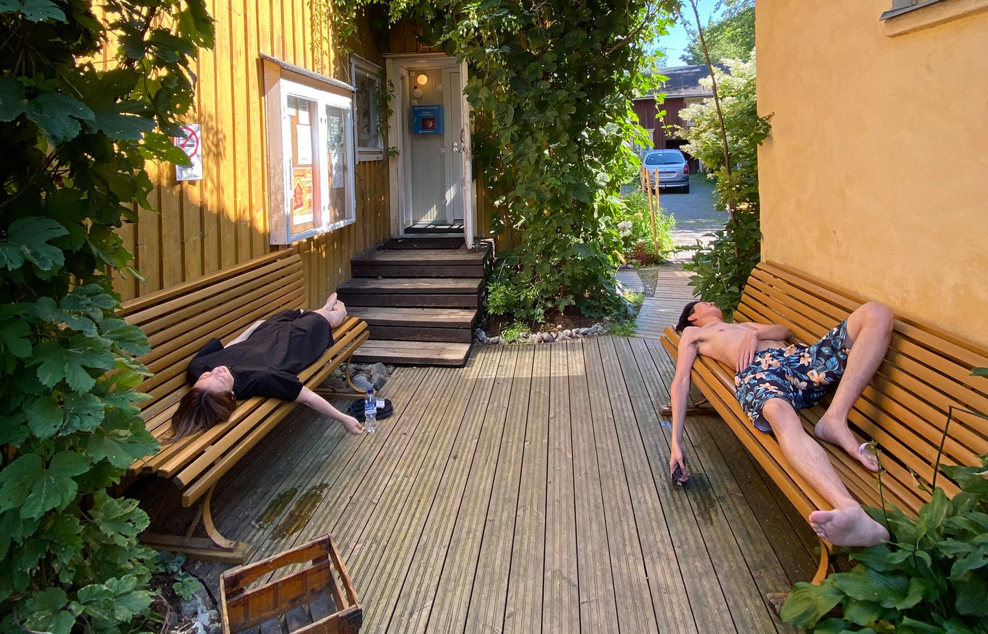 ふわふわした気持ちで、外のベンチに横になります。この色彩と風景、見たことある方もいらっしゃるのではないでしょうか! 実はおふろcafé utataneのサウナコタに飾られる写真は、このラヤポルティンサウナの写真なんです。