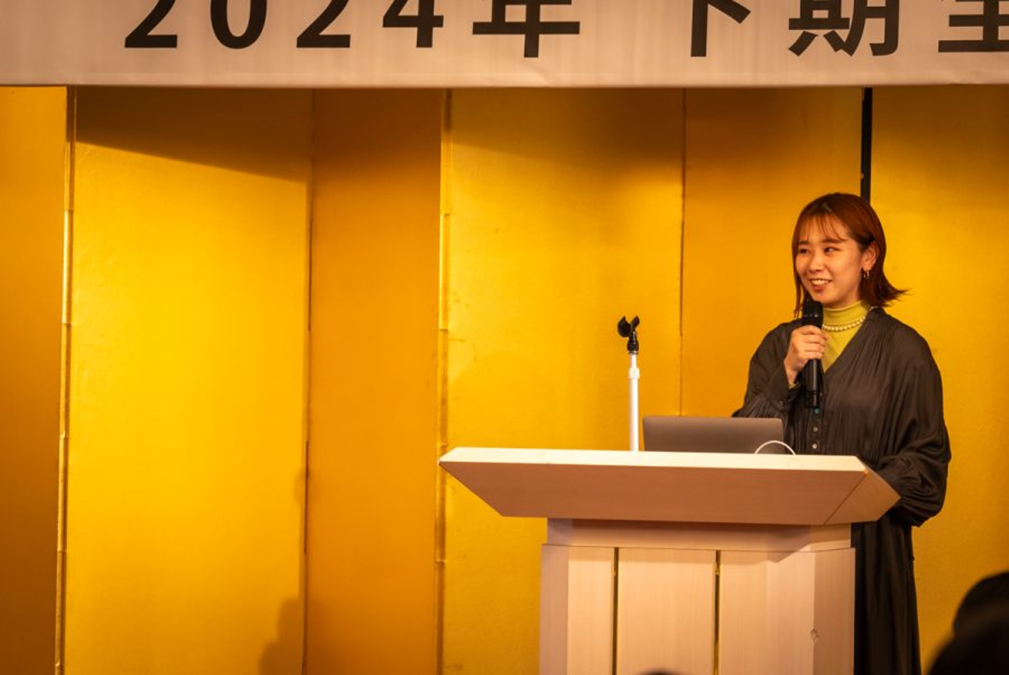 第1部はブラントデザインラボ作成のオープニングムービーからスタート。フォーマルな雰囲気で進んでいきます。社長の山崎さんの中長期経営計画に始まり、専務取締役の白石さんの2024年のこれまでの業績の振り返り、支配人からは各店舗と部署のプレゼンテーションを実施。来季に向けて目標を再度共有いただく時間となりました。