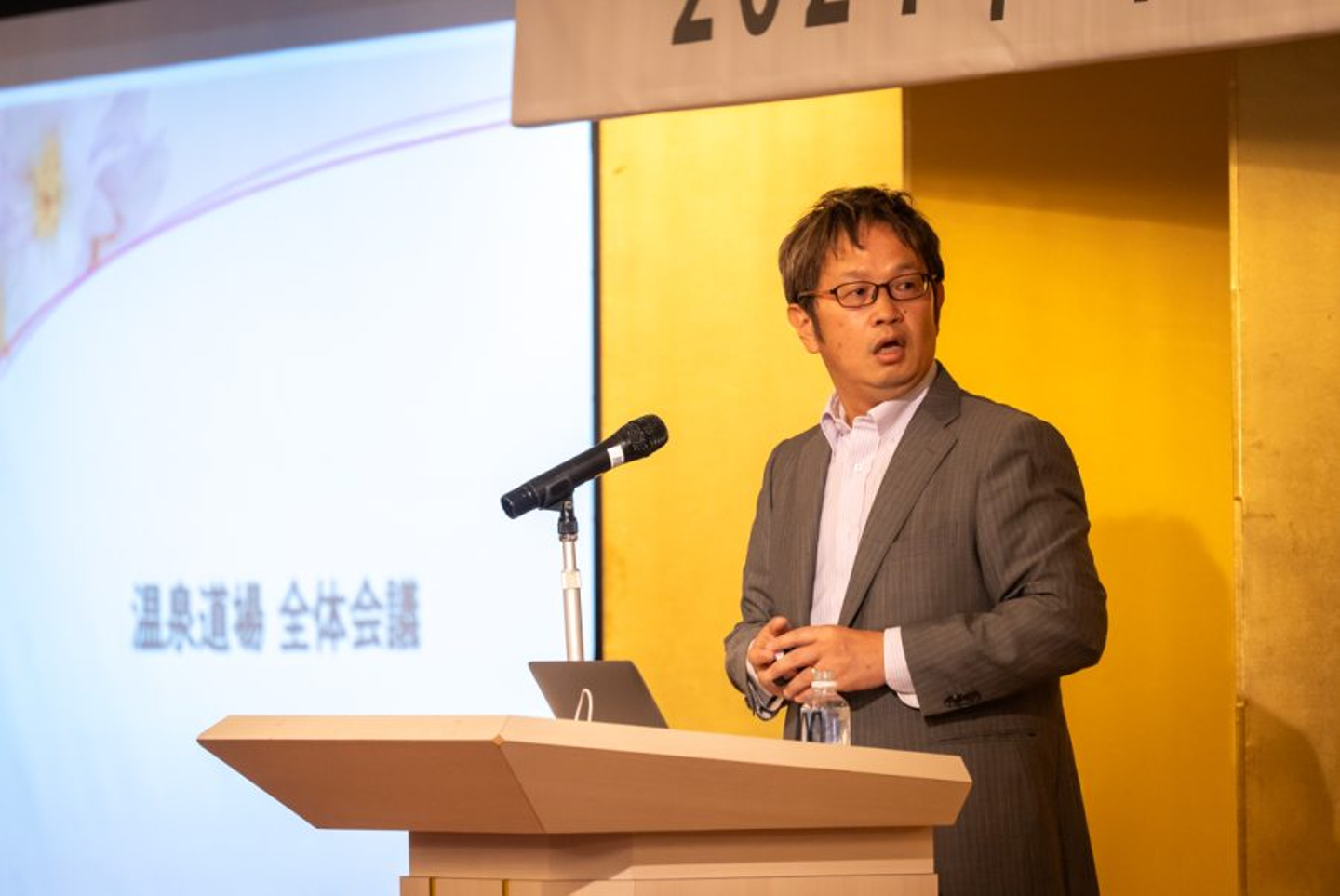 温泉道場の社外取締役である株式会社 SAKURA PIRATES 代表取締役の酒寄さんから、2024年11月にオープンした「常総ONSEN&SAUNA お湯むすび」の立ち上げや運営についてお話いただきました。