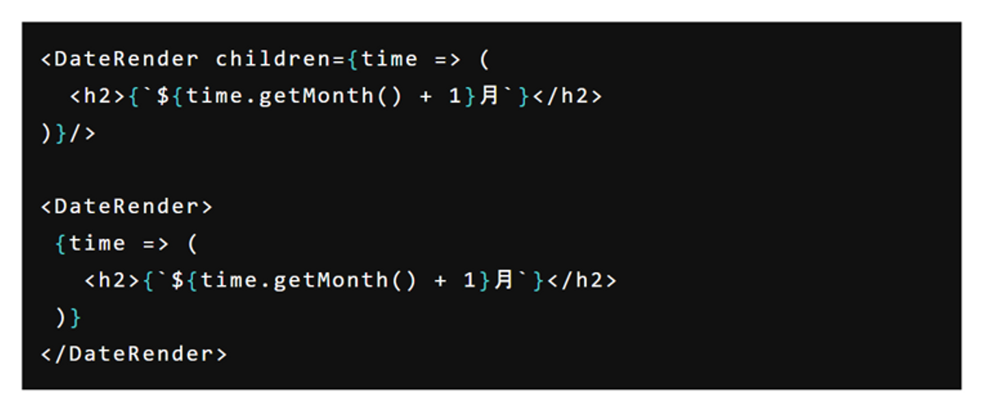 // => 今は7月ですこうすれば、表示する日時のパターンがどれだけ増えても、振る舞いを再利用してコンポーネントを作ることができます。 また、props.renderとして渡さずに、childrenとして渡すこともできます。 childrenとして渡す場合には
