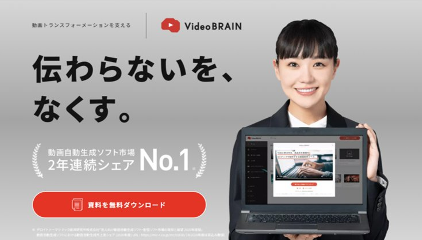 動画トランスフォーメーションを支えるVideo BRAINは、AIのサポートで誰でも簡単に高品質なストーリー性のある動画を数分で編集できるクラウドサービスです。