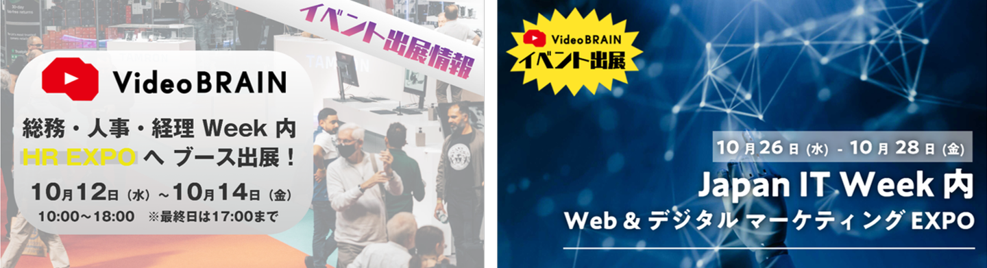 Video BRAIN は10月12日(水)~10月14日(水)に日本最大のバックオフィス向けの専門展示会「総務・人事・経理Week」 へ、10月26日(水)~10月28日(金)には600社が出展する日本最大のIT展示会「Japan IT Week」 にブース出展しました。
