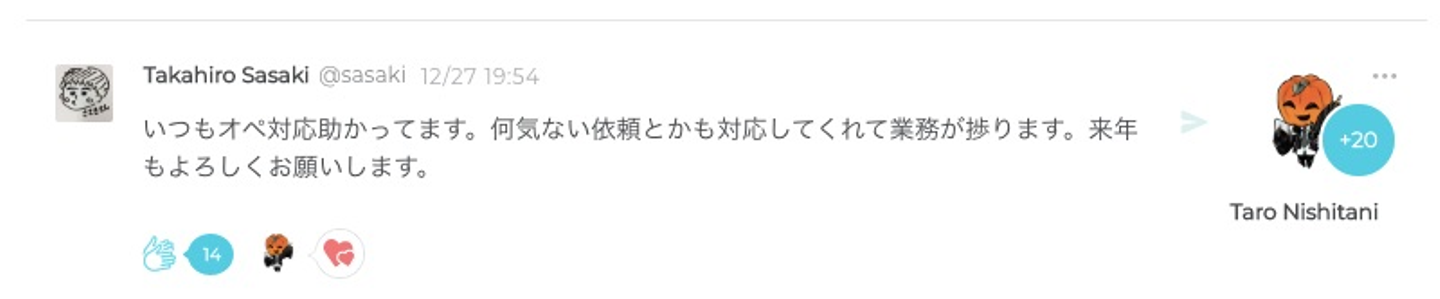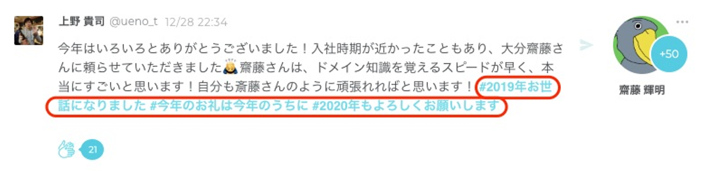 社内ではこのように使われ、皆が年末に駆け込みで感謝の投稿をする姿が多く見られました^^