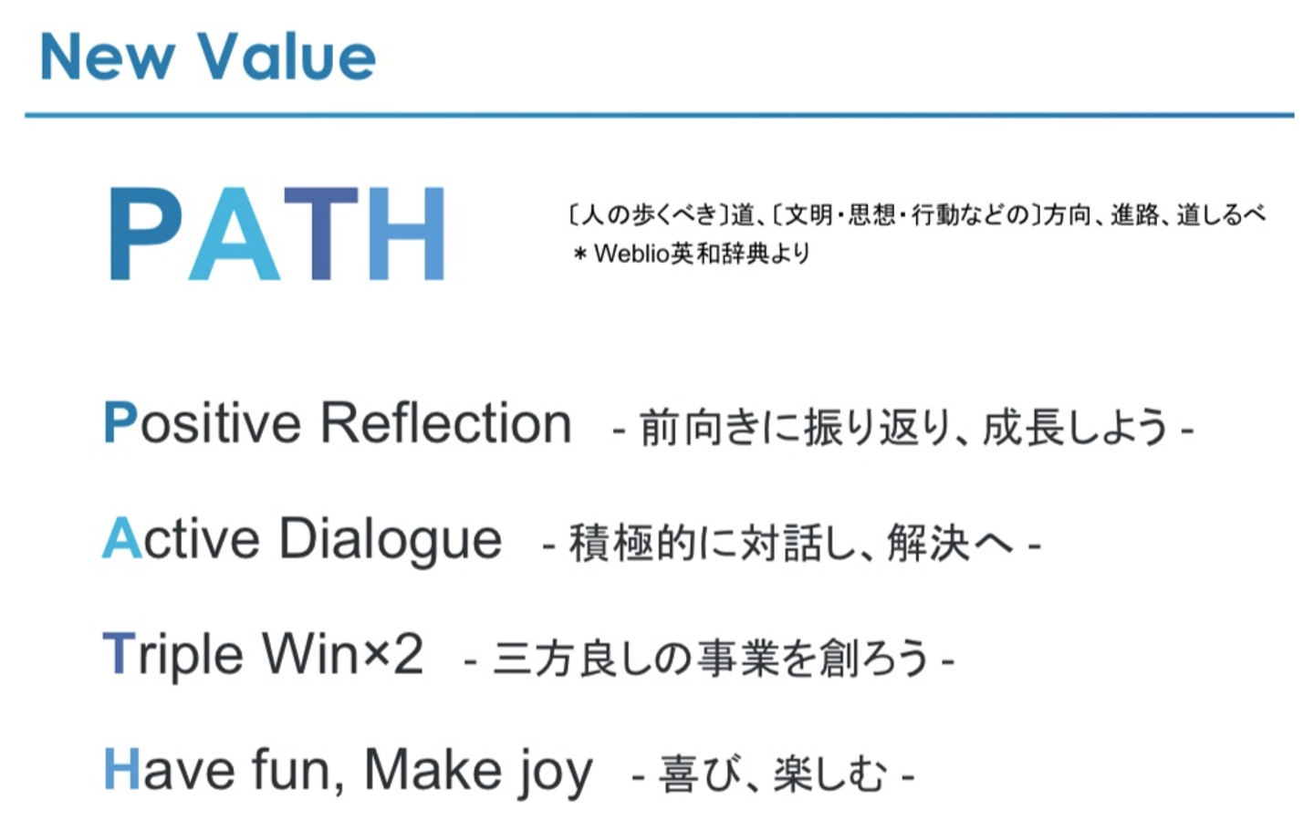 こちらは昨年秋に新しく策定されたバリュー「PATH」の浸透を目的に、人事チームが作成してくれました!