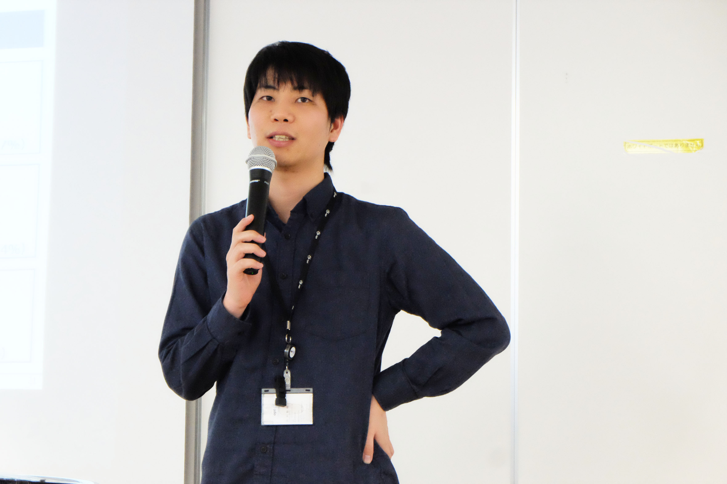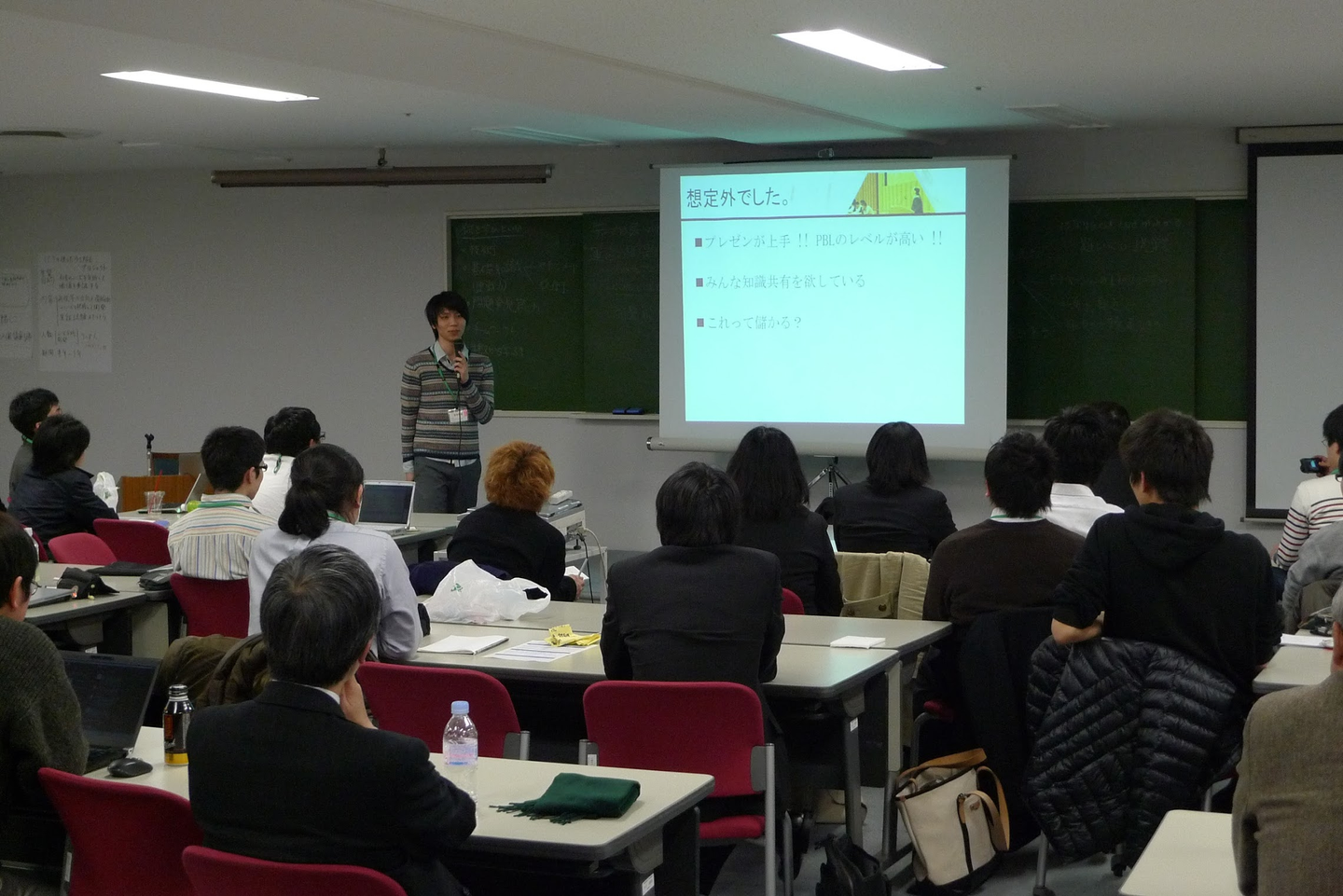 ▲所属する領域会議にて発表をする岩本