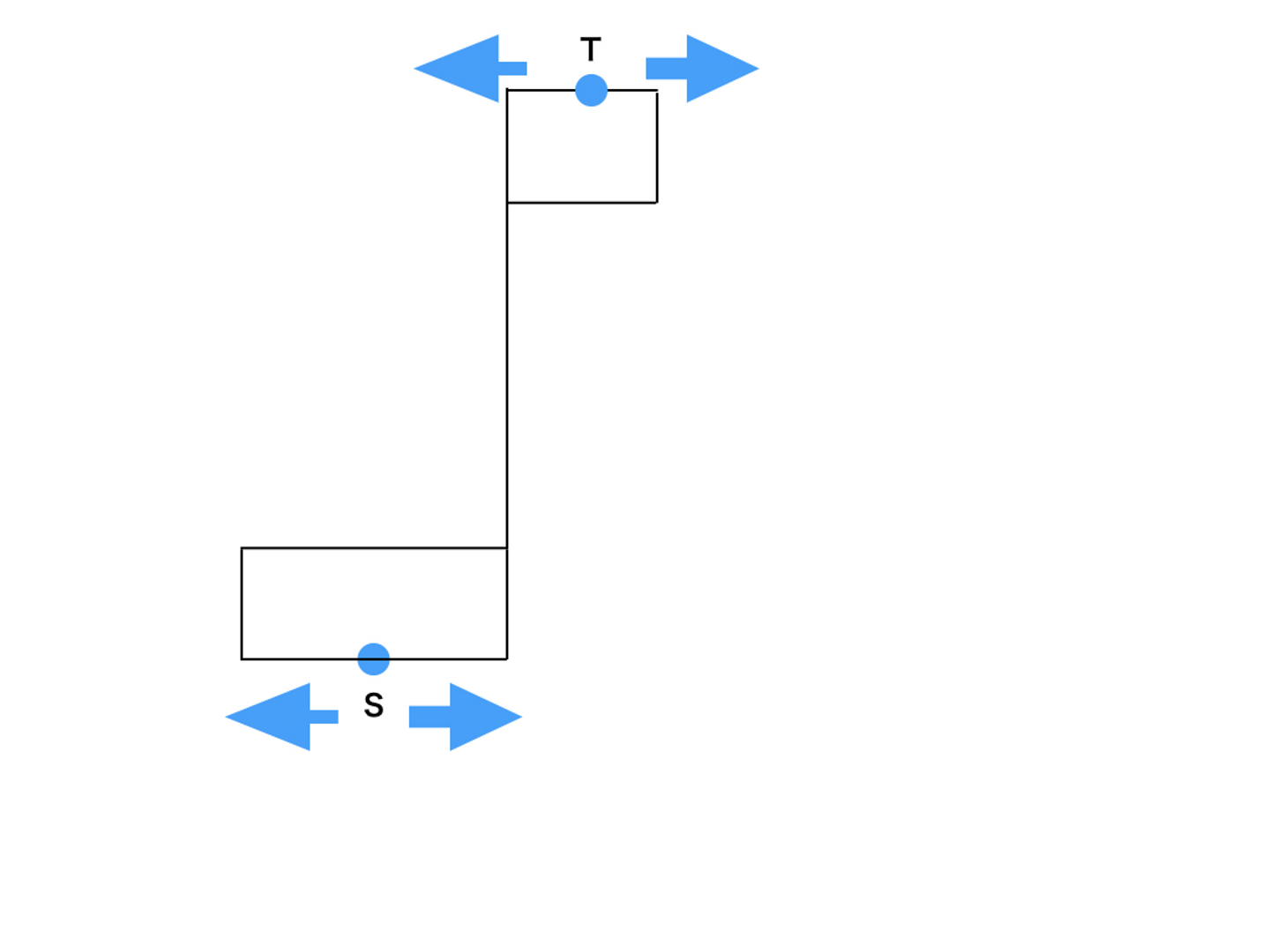Loogiaに入力された訪問先間の所要時間や経路を探索するエンジンの開発をしています。ルートの最適化を行うためには、全ての訪問先の出発・到着の向きを考慮した2点間経路コストを計算しなければいけません。例えば、A, B, Cという3つ訪問先が入力されると,A→B、B→C、B→A、C→B、A→C、C→Aの6つの最短経路を計算します。次に、各訪問先の出発・到着の向きを考えます。下の図を例にとると、訪問先SとTそれぞれの出発・到着可能な方向は4パターンあります。道路特性(三叉路・十字路)によって計算するパターンの数が変わります。