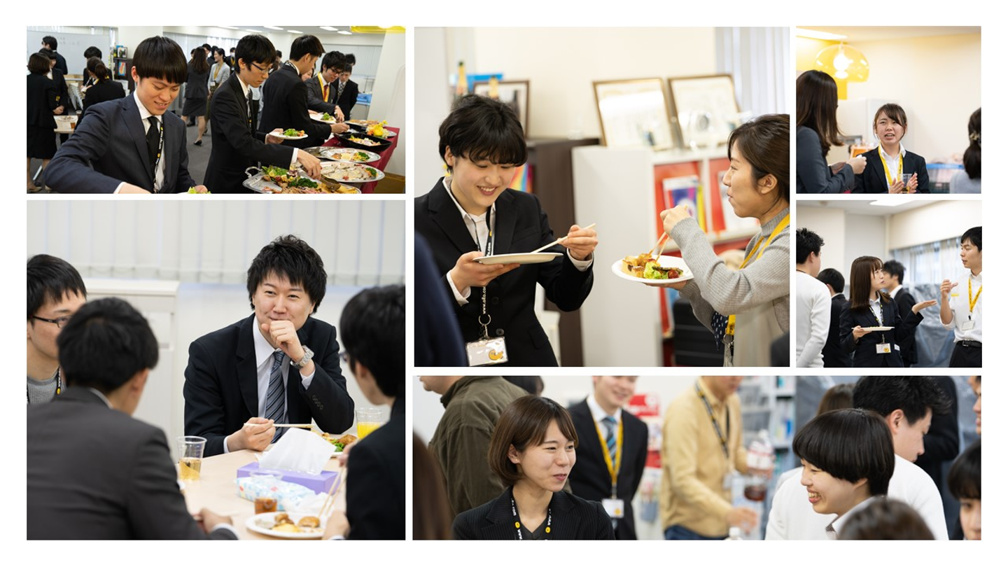 お昼には先輩社員たちとの立食ランチ交流会へ♪