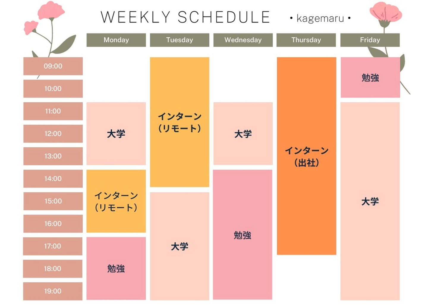 楽しく働いているということで安心しました。とはいえ学校にも通っているので時間管理は難しそうですよね。一週間はどんなスケジュールなんですか?