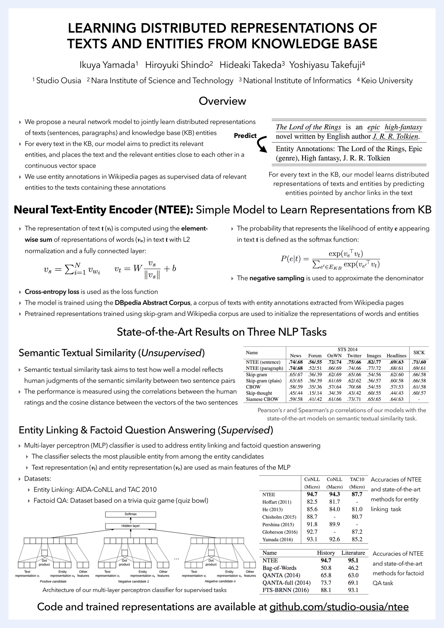 また、これまでに開発してきた技術は、世界的に評価を得ています。具体的には、情報科学におけるトップ会議(NIPS, ACL, NAACL, WWW、WSDM)で行われたグローバルなコンペティションにて、四回の優勝と一回の準優勝をしているほか、国際的に権威ある論文誌やトップ会議などで成果を発表しています。詳しくは、下記URLを参照してください。
