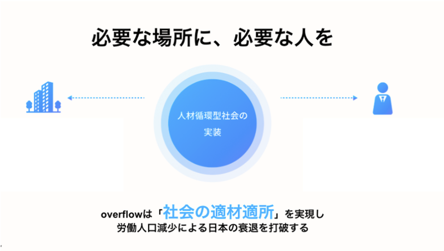 対してOffersは「人材循環型社会の実装」をミッションとして掲げており、労働人口が減少する未来において多様な才能を持つ個人が最も輝ける場所に出会える世界を実現することを目指しています。