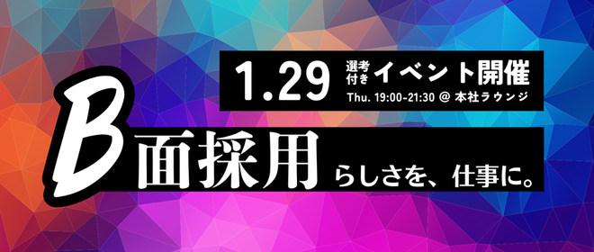 <第2回B面採用イベント開催決定!>らしさを、仕事に。自分らしさをバネにPR職に挑戦したい方を大募集します!(2026年1月29日)