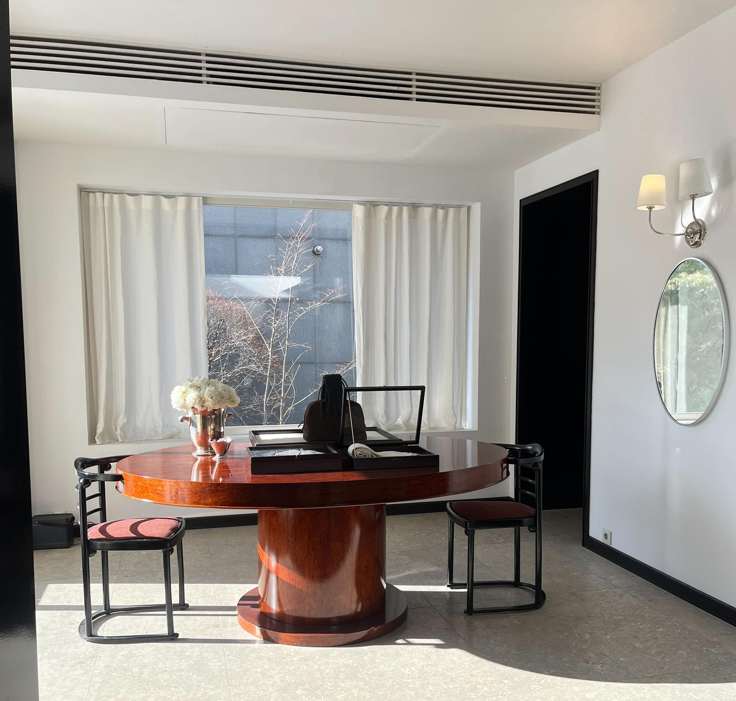 NOTHING WRITTEN(ナッシングリトゥン):ダイニングルームのラウンドテーブルの上に製品を設置。自然光が差し込む落ち着いた空間の中で、製品の佇まいが引き立つような演出。