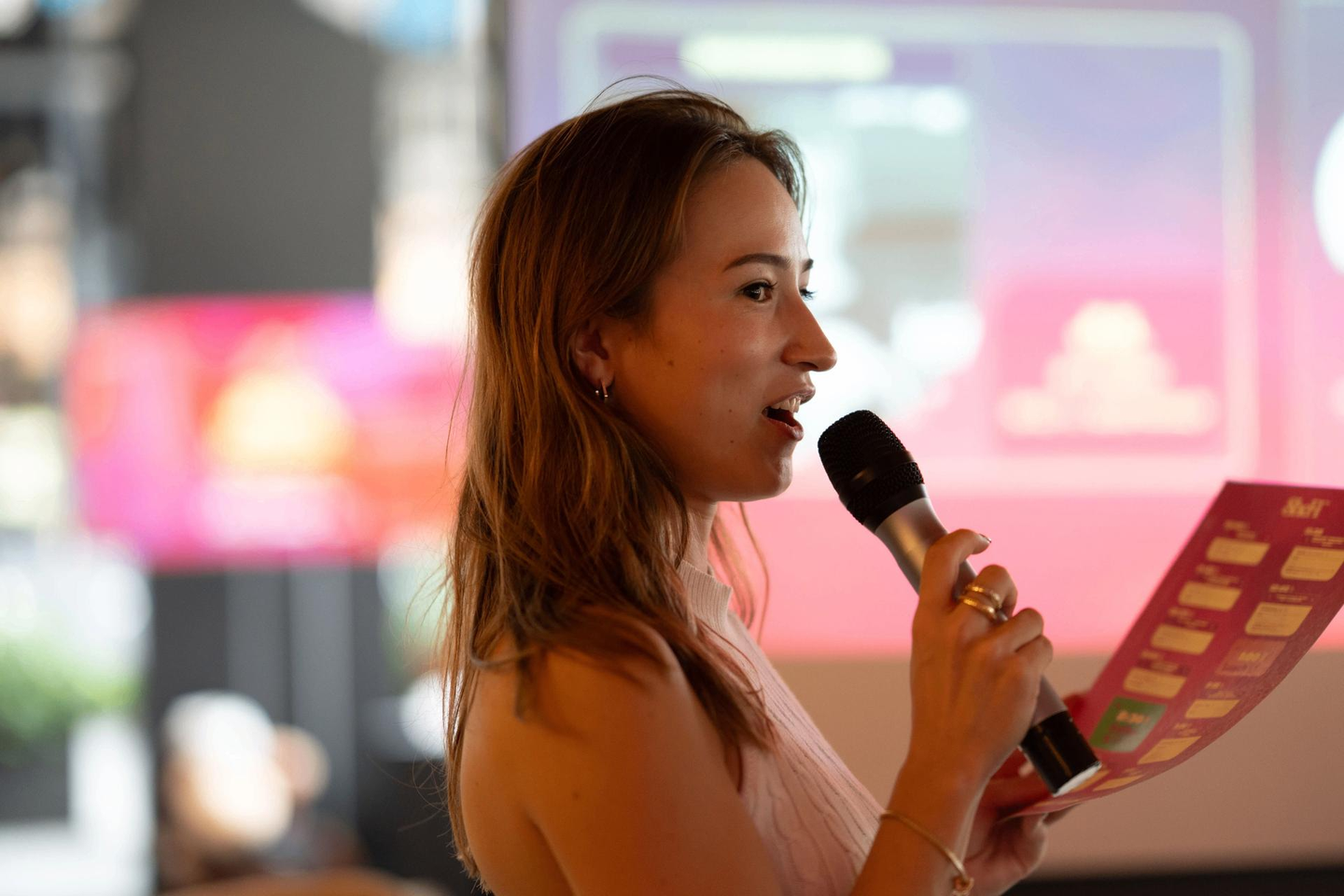 ▲ シンガポールのカンファレンスで司会を務める大久保さん
