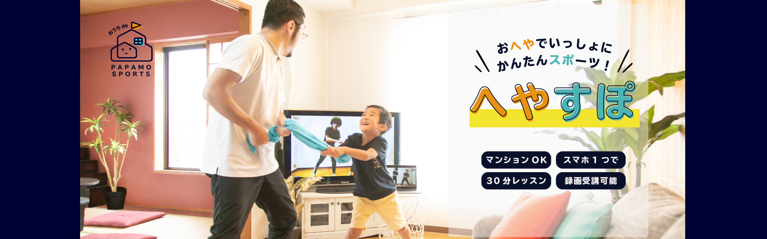 PAPAMOは、「人生のあらゆる初体験を最高にする」をミッションに掲げています。 中でもまずは、「運動との出会いを最高にする」をミッションに、こども向けのオンライン運動教室「へやすぽ」と運動動画見放題サービス「へやすぽTV」を展開しています。 幼少期の運動体験は、生涯の運動習慣・健康はもちろん、自己肯定感やチャレンジ精神など心のあり方にもに大きく影響します。 へやすぽとへやすぽTVは、どこにいても、どんな子も運動習慣をつけられ、運動が好きになれる、そんな運動との出会いをお届けすることを目指しています。