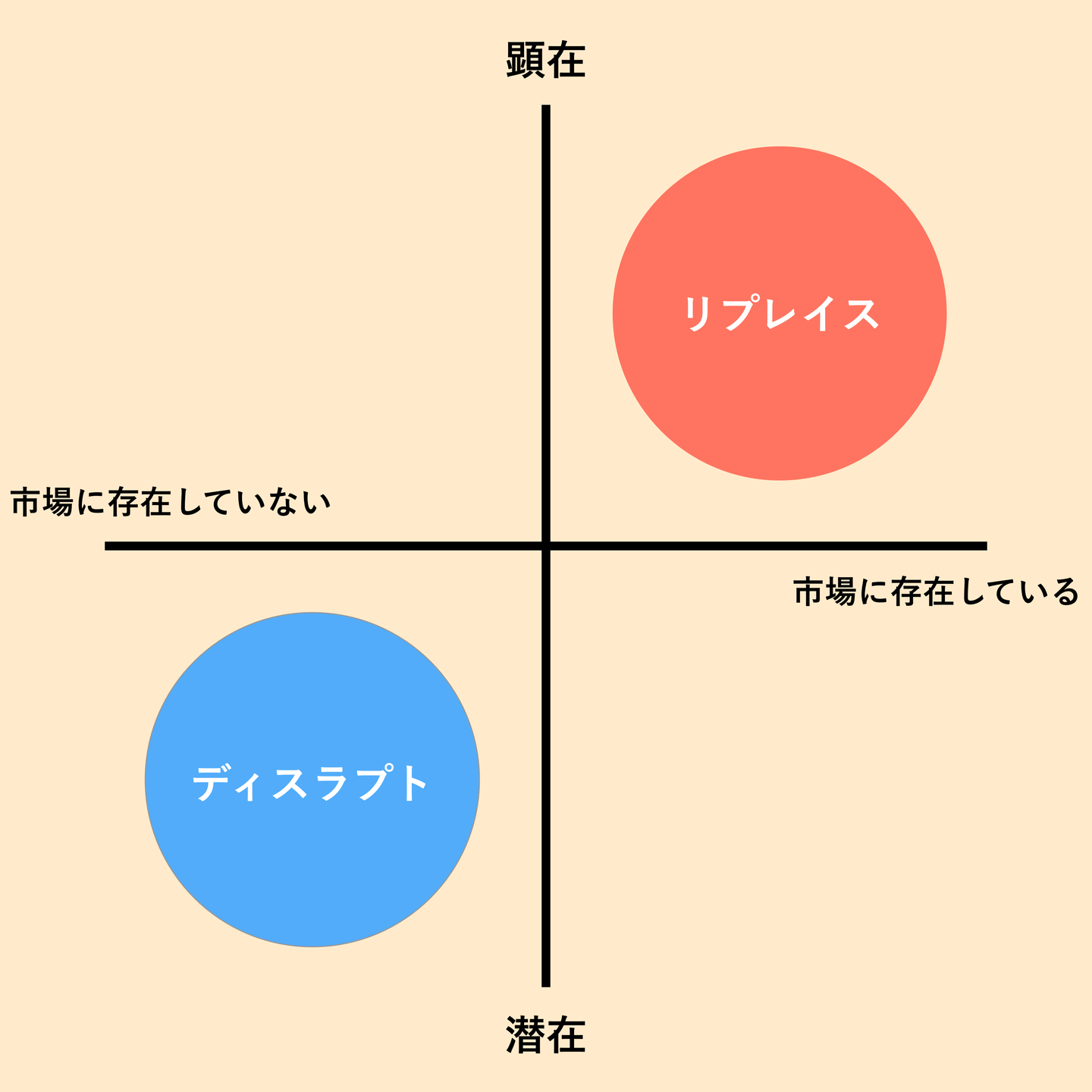 X軸:市場に既に存在している↔市場に存在していない