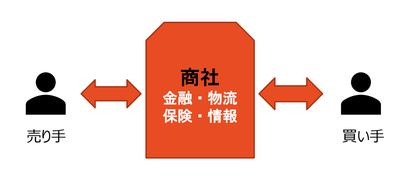 商社とは、主に他企業の製品およびサービスなどを買いたいという買い手に販売する業務を生業にしている企業を指しています。その商品は多岐にわたり、情報や金融、保険や物流など様々です。簡単にいうと、商品を売りたいという企業とその商品を買いたいという人の仲介役をしているわけです。