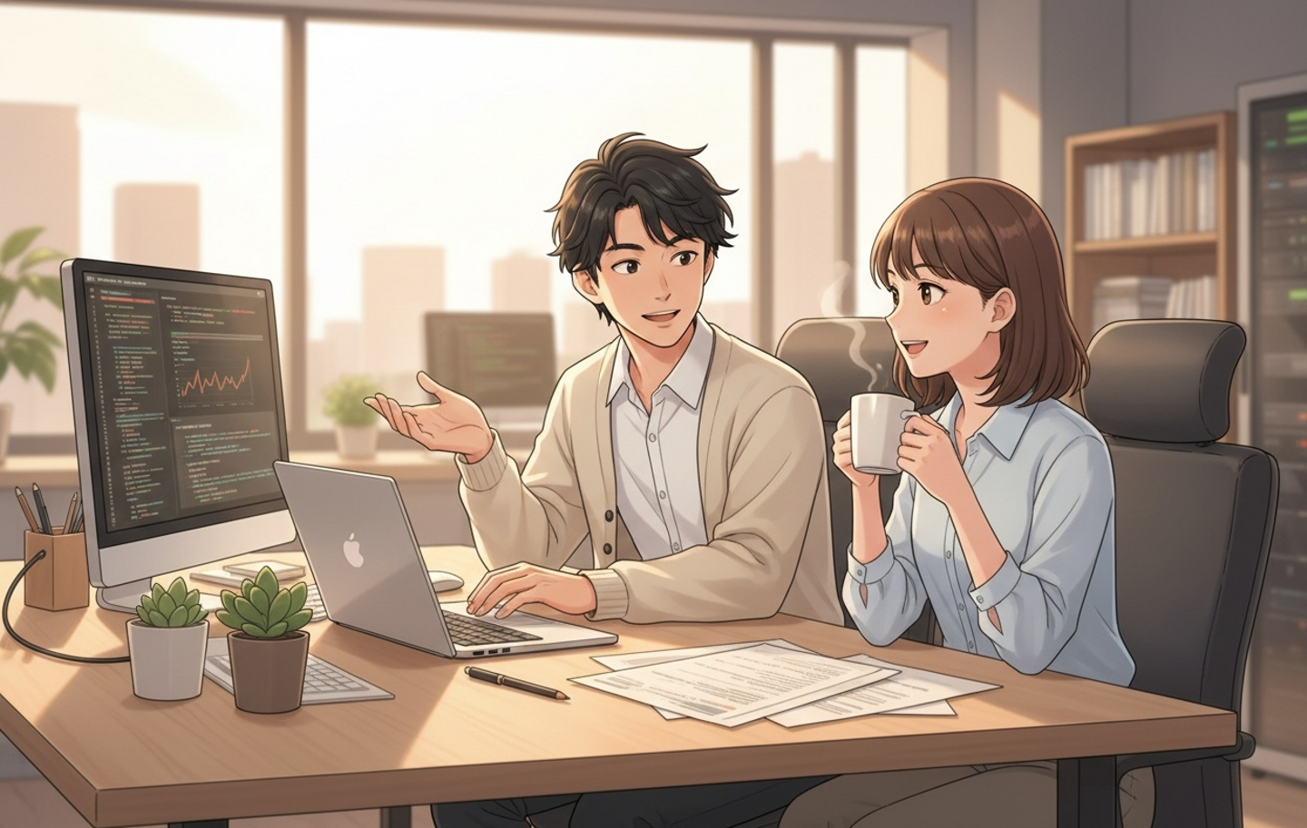 入社前はIT未経験だったKさんが、研修で学んだことを現場で活かしながら少しずつ成長していく様子や、仕事のやりがいについて伺いました。