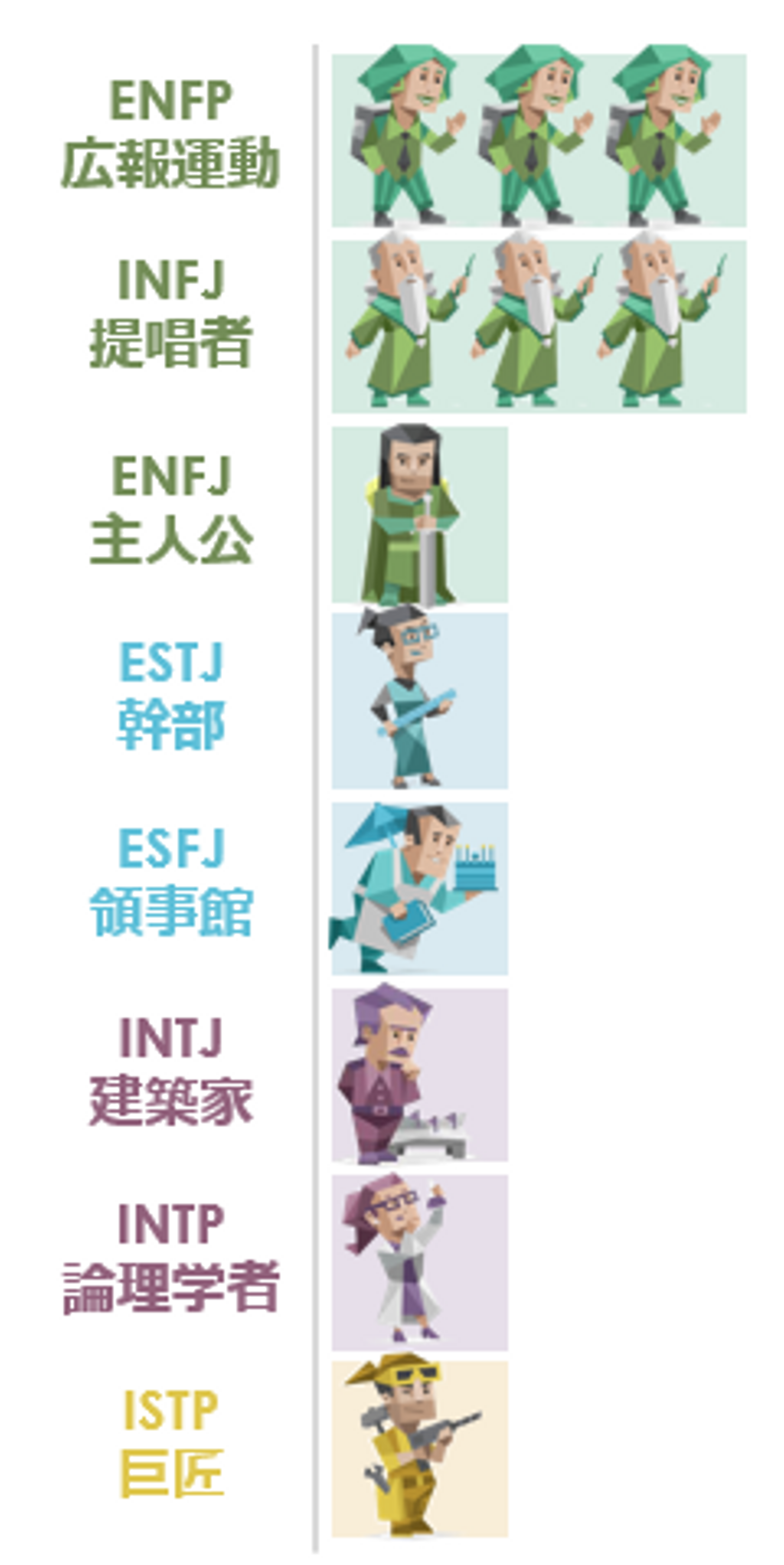 本当にいろんなメンバーがいるので、体系的にわかりやすくするためにMBTIで表しました!