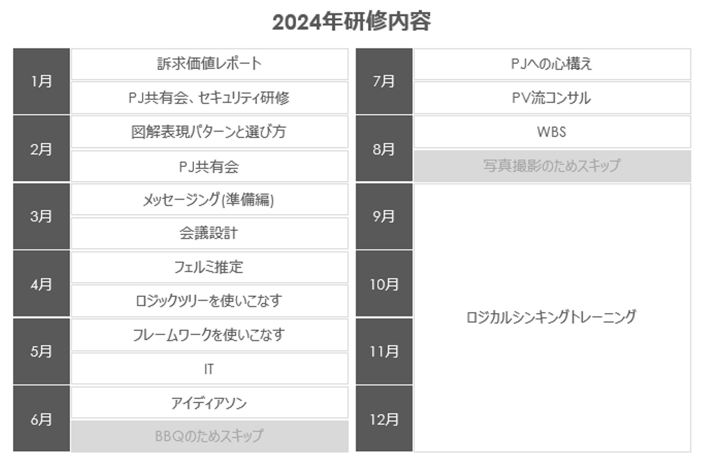 同じ案件に入っていないメンバー同士のコミュニケーションも兼ねて、基本オンサイトで研修をします(予定がある人はリモート参加、不参加も柔軟に可能です)
