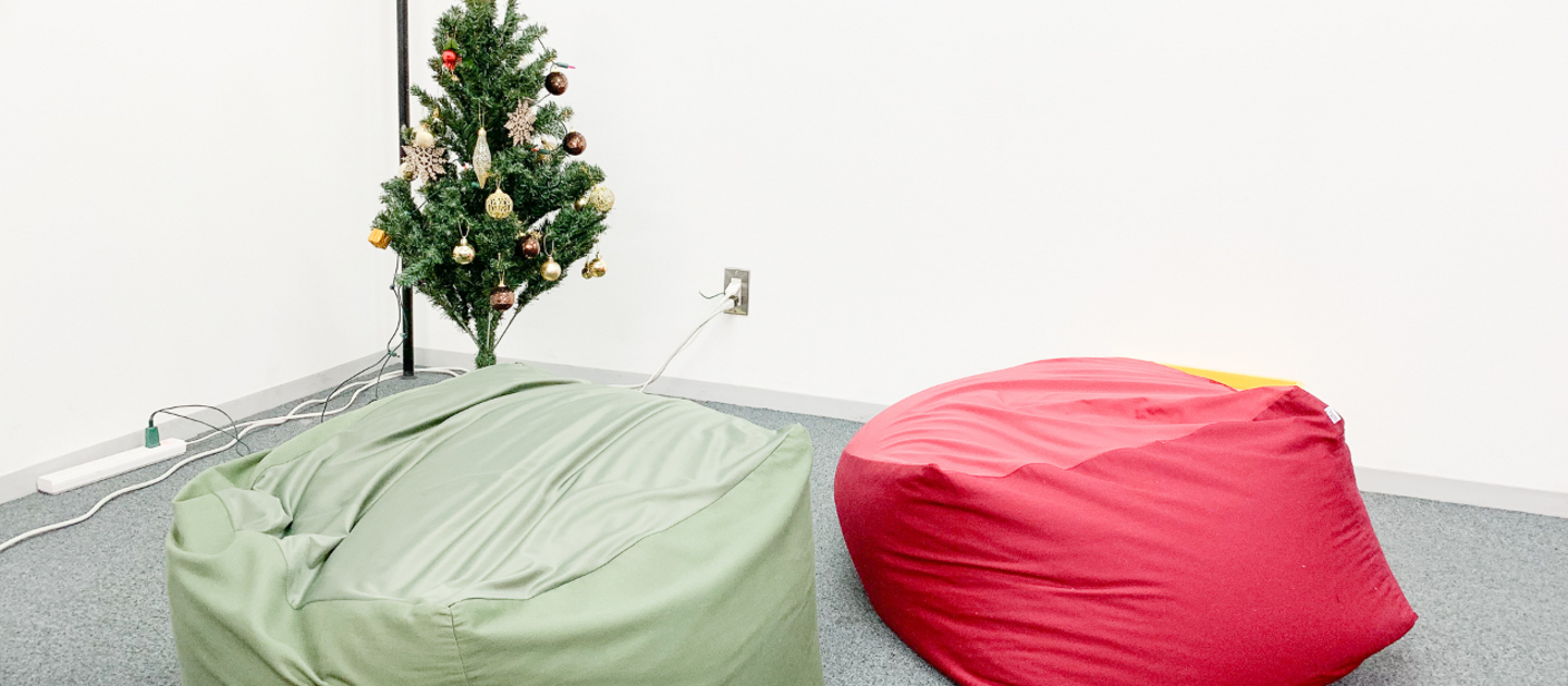 昼食後に眠たくなれば社内の休憩スペースでお昼寝ができます。写真がPearの休憩スペース。リラックスしたごろ寝を実現させるクッション完備です。