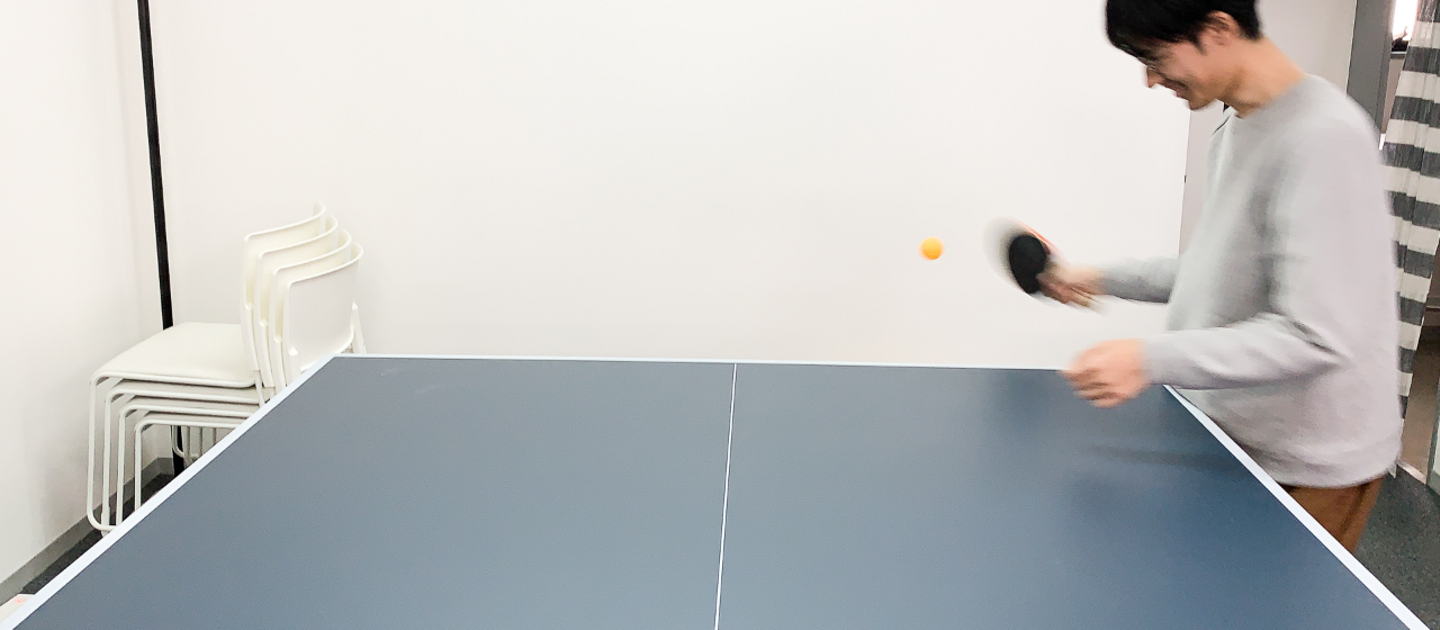 Pearのオフィスには、競技用の規格を満たした卓球台があります。そう、競技用の卓球台が。PCに向かう時間が多いメンバーたちは慢性的な運動不足に陥りがちですが、この卓球台のおかげで適度にリフレッシュすることができています。