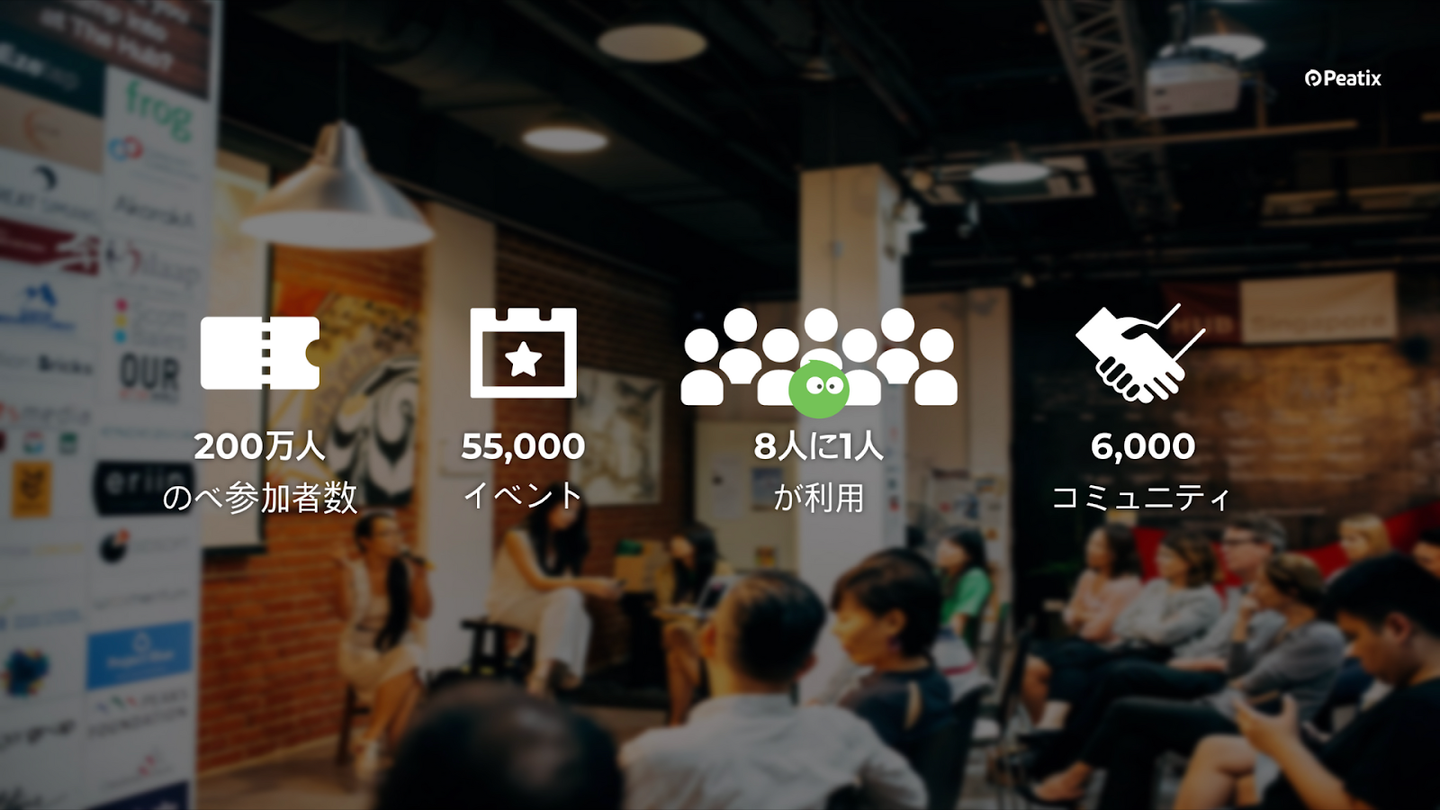 10年間でのべ200万人の参加者、6,000のコミュニティにご利用いただき、開催イベント数は55,000にのぼりました。シンガポール人口のうち、8人に1人にPeatixを活用いただいている状況です!