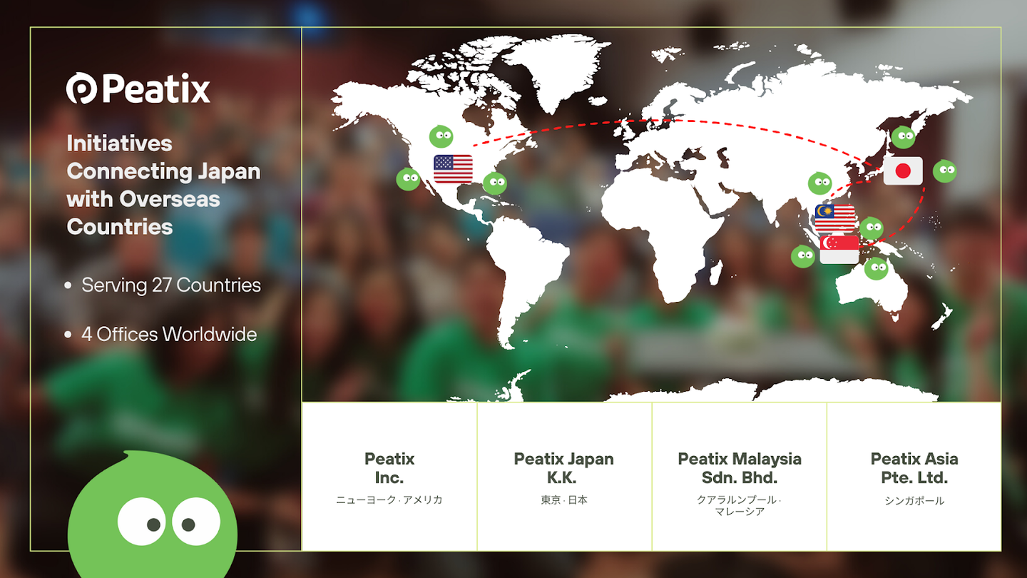Peatixは、日本、アメリカ、シンガポール、マレーシアにオフィスがあり、現在27カ国にサービスを提供しています。グローバルでサービスを展開していることを活かして、国を横断した取り組みを行ってきました🌏