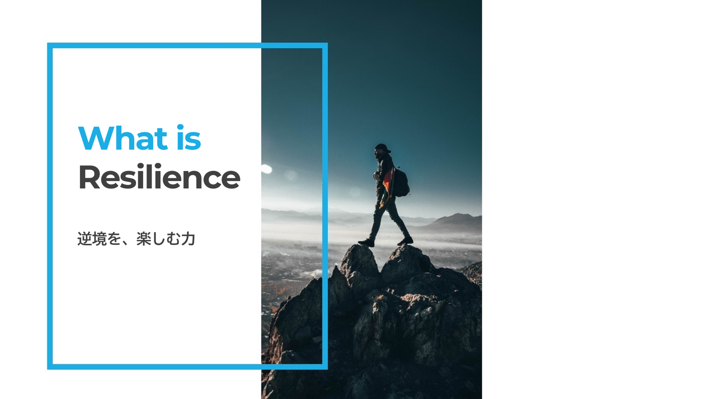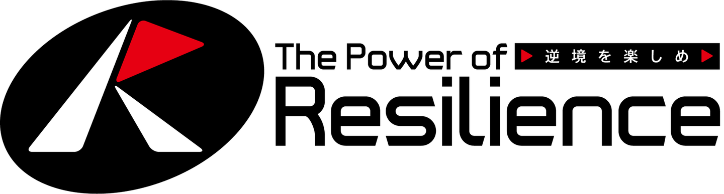 ↓↓↓レジリエンスの「R」をモチーフにマーク部分は逆境に向かっていく勢いを、また白い部分で逆境を楽しむ「人」という文字を表現