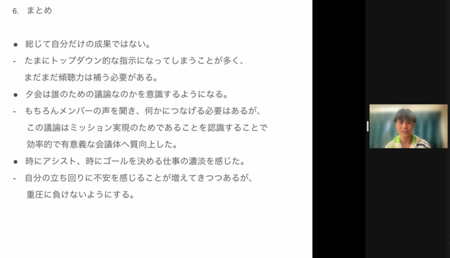 ・普段からミッションや価値観と紐づけて振り返られているので、こういう時にすらすらエピソードが出てくるんだろうなと思います!さすが!