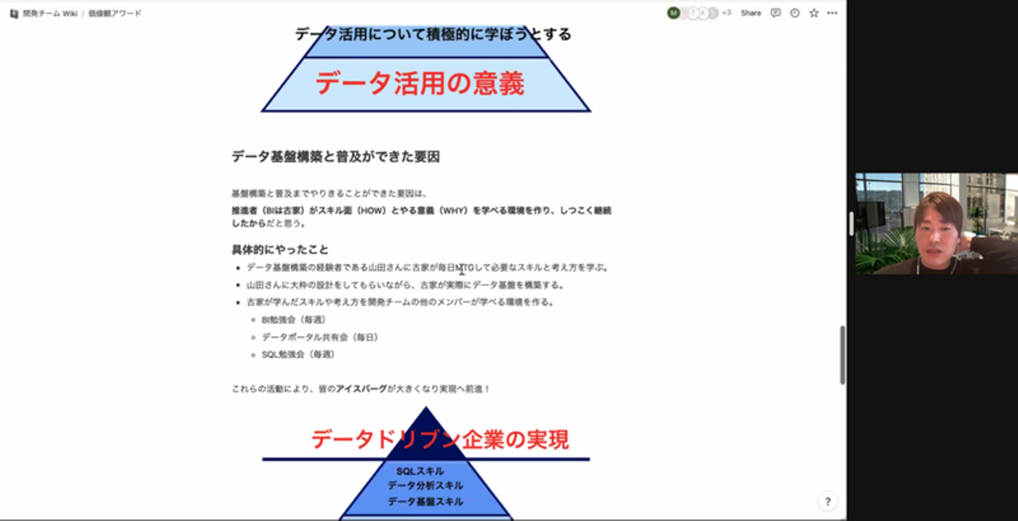 今回初の取り組みでしたが、自分がこの四半期に体現した価値観を振り返るきっかけにもなり、さらに他のメンバーからフィードバックをもらえるという、とても良い企画だったと思います。このまま何度も続く歴史あるイベントになってもらえると嬉しいですね!