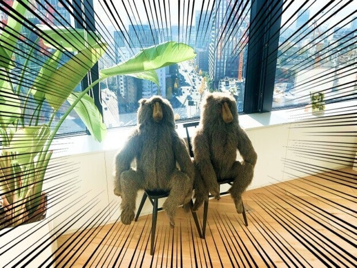 というわけで、ここにも私たちのオフィスライフを見守ってくれている霊長類的な何か(調べてません)がいます。2つセットなので私は勝手に奈良・東大寺南大門の金剛力士像になぞらえて「ア(阿)」と「ウン(吽)」と呼んでいます。今日もニラミをきかせてくれています。オフィスを守ってくれています。
