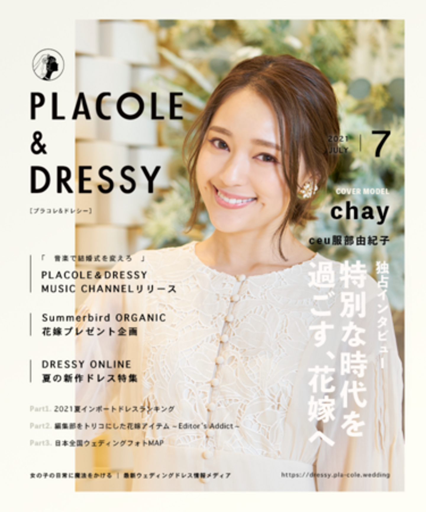 【2021年7月号】chayが花嫁アプリ『PLACOLE&DRESSY』のカバーモデルとして登場!withコロナを過ごす花嫁に向けた独占インタビューも掲載!