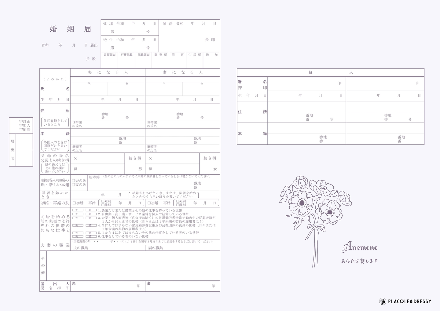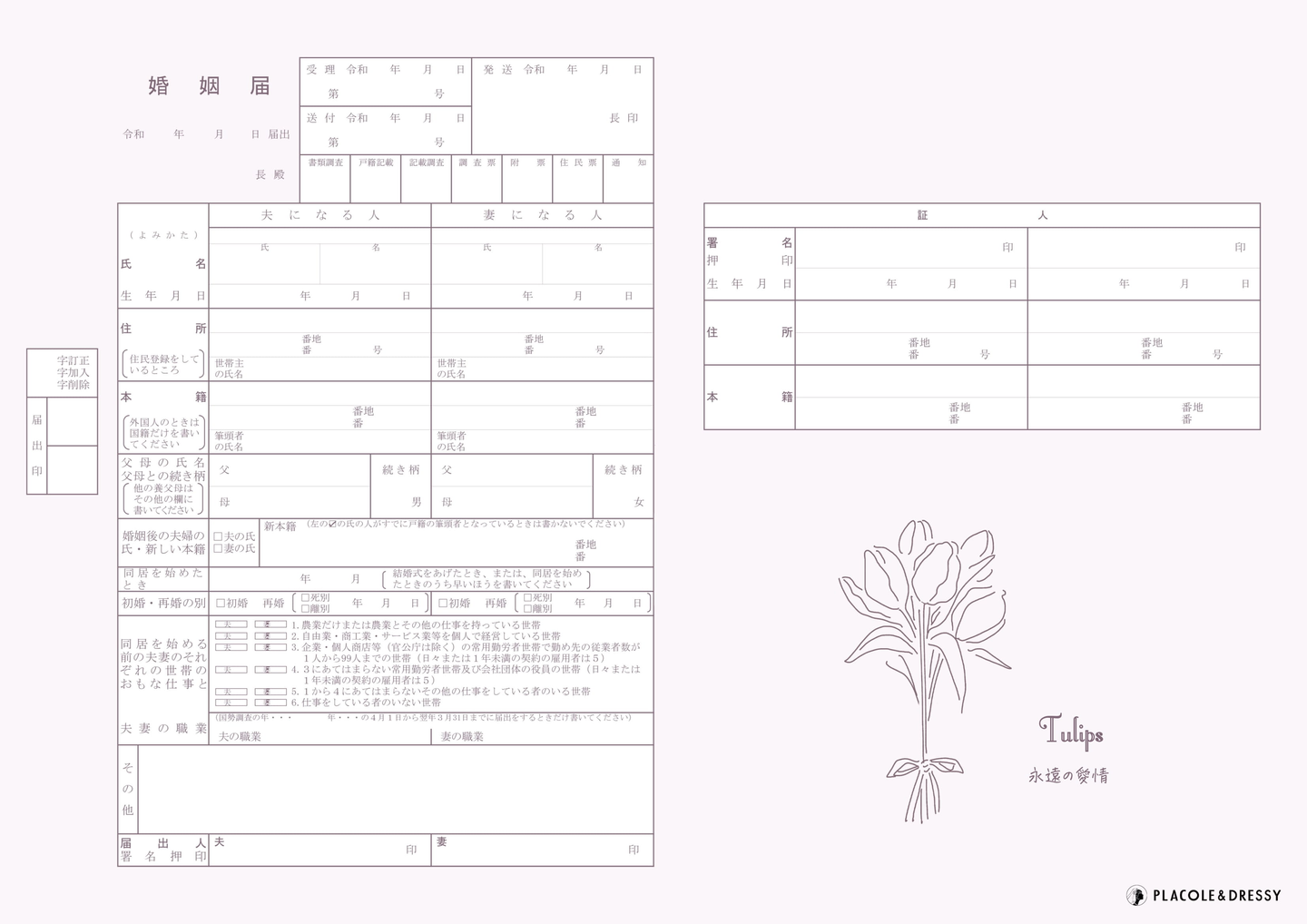 【無料DL】PLACOLE&DRESSYオリジナル 『プラコレ婚姻届』新デザインが登場!11月「いい夫婦の日」や「花言葉」など合計5デザイン追加!