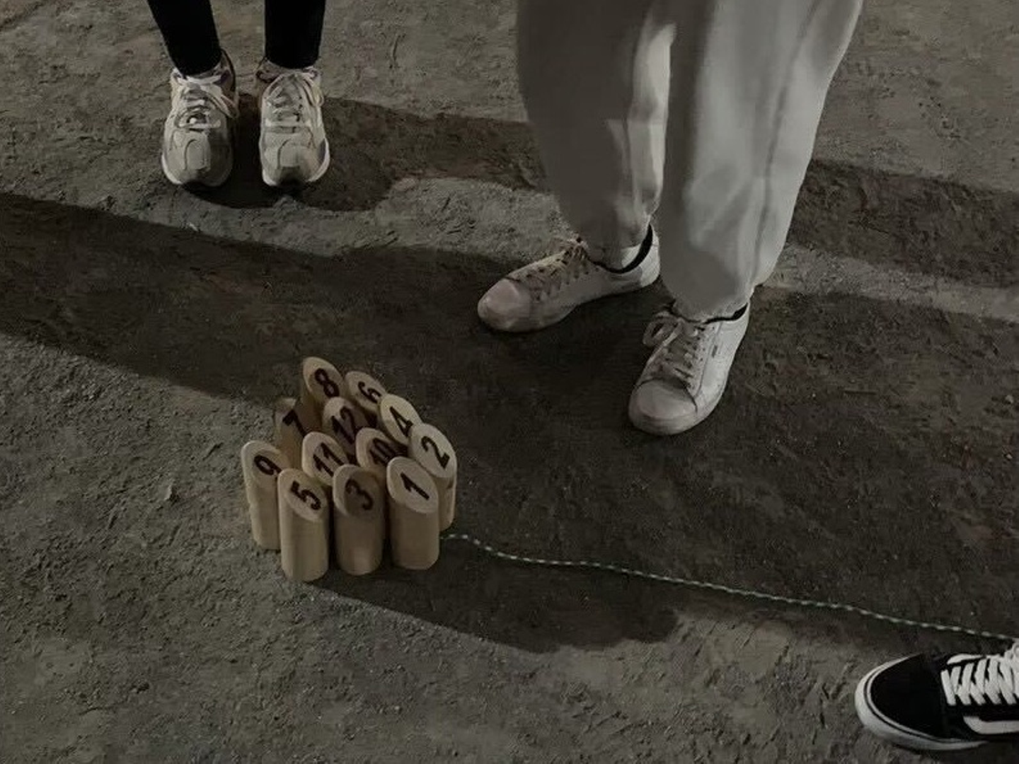 モルックは、番号がついた木を球で倒して獲得ポイントを競うというスポーツです。