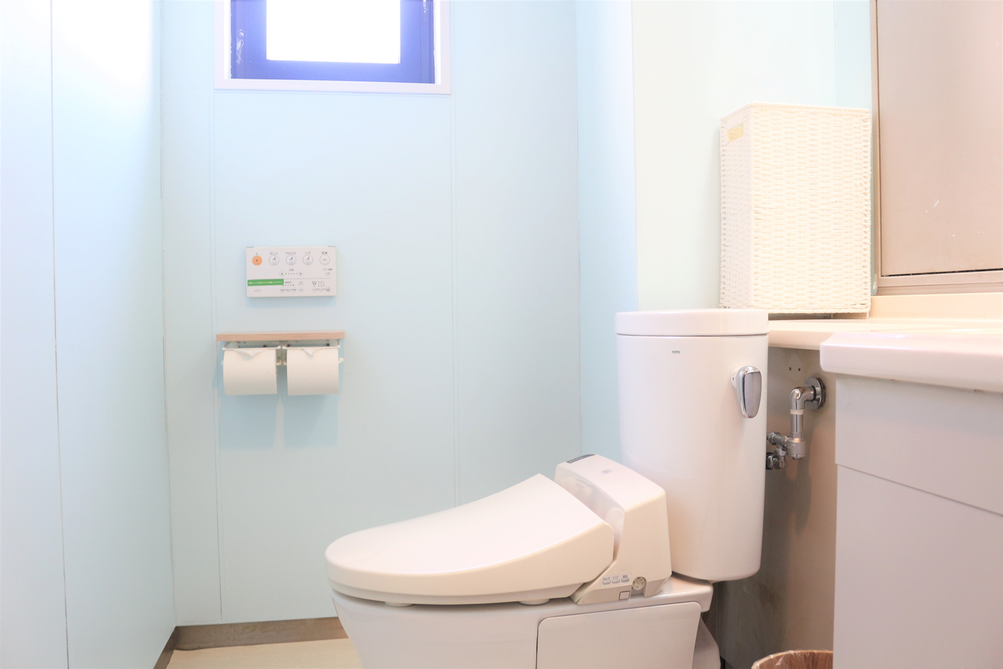 トイレの壁もPlayceカラー。実はこれ、三好と久保で塗りました!二人で案を出しながら、今も絶賛改装中。このままでは殺風景なので、今後は小物などを増やしていく予定です。