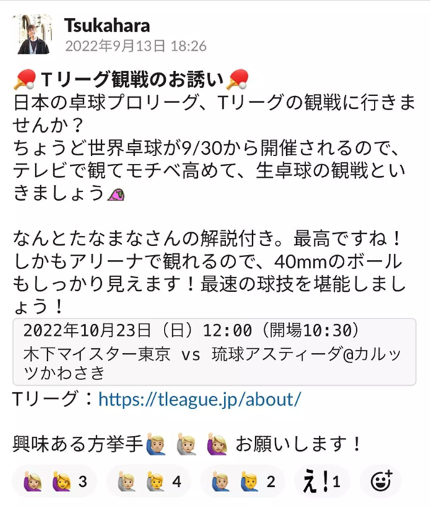 実はこの朝会こばなしをされる10日前。Slackの雑談チャンネルにこんなメッセージが。