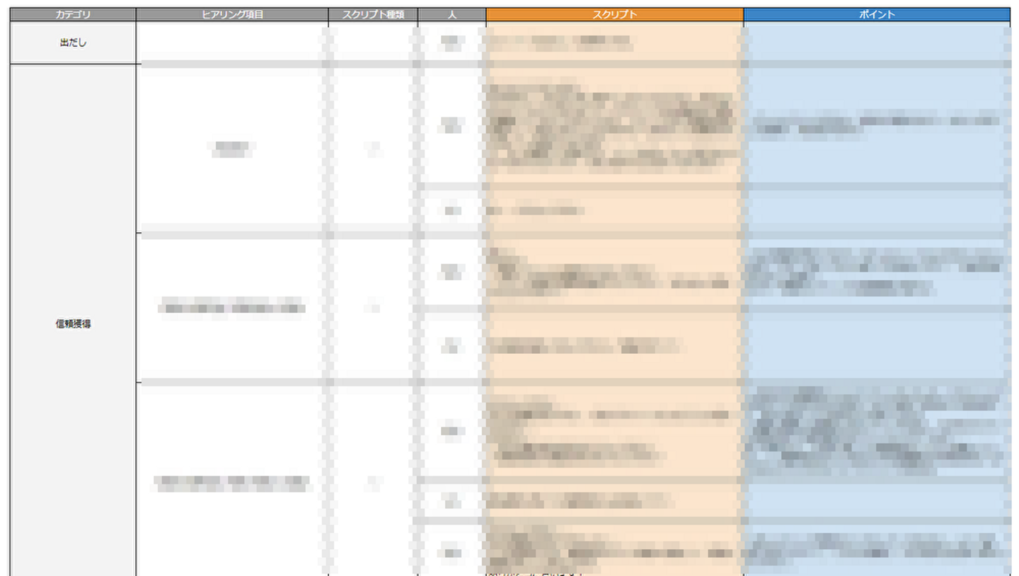 弊社は、運送業界にて人材紹介などを行っているのですが、セールスやキャリアパートナーの部署では、上記のようなスクリプト(会話の内容)が型化されています。