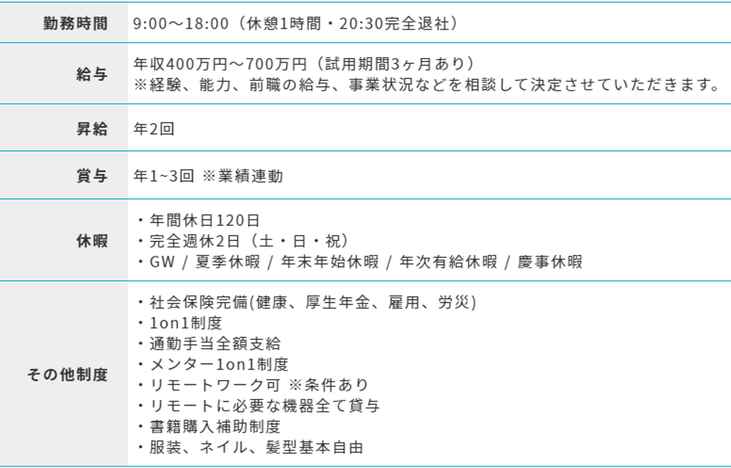 今回は、「求人票ってフォーマット決まってて、あまり深く書けないな」という疑問から、全部載せした求人票を作ってみたら、どのくらいの情報量になるんだろうと思って執筆いたしました。